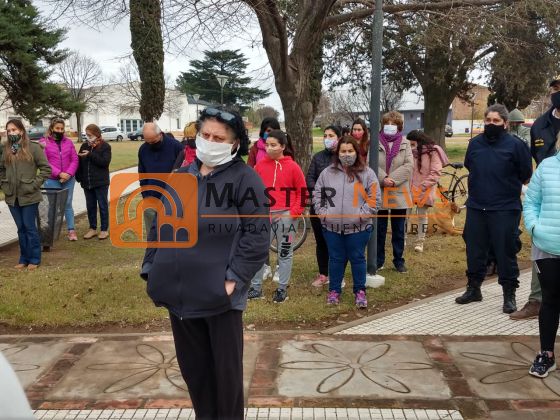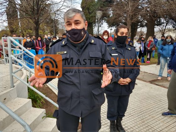 Allí ante cerca de 200 habitantes entre los cuales se encontraban mujeres y hombres, adolescentes y niños que reclamaron JUSTICIA a través de aplausos y unidos en un solo grito, el Comisario Inspector Sergio Rodríguez titular de la Policía de Rivadavia y la Sub Comisario Verónica Sequeira Jefa de la Comisario de la Mujer y la Familia de Rivadavia escucharon a los vecinos y les contaron lo que se puede contar en un caso como estos.
