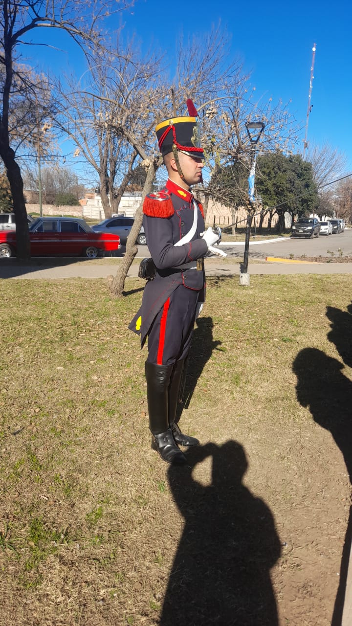 Este miércoles por la tarde dos integrantes del regimiento de Granaderos a caballo Gral. Don José de San Martín que forman parte de la custodia presidencial estuvieron presentes en el acto protocolar que se realizó en la plaza Manuel Belgrano de la localidad.