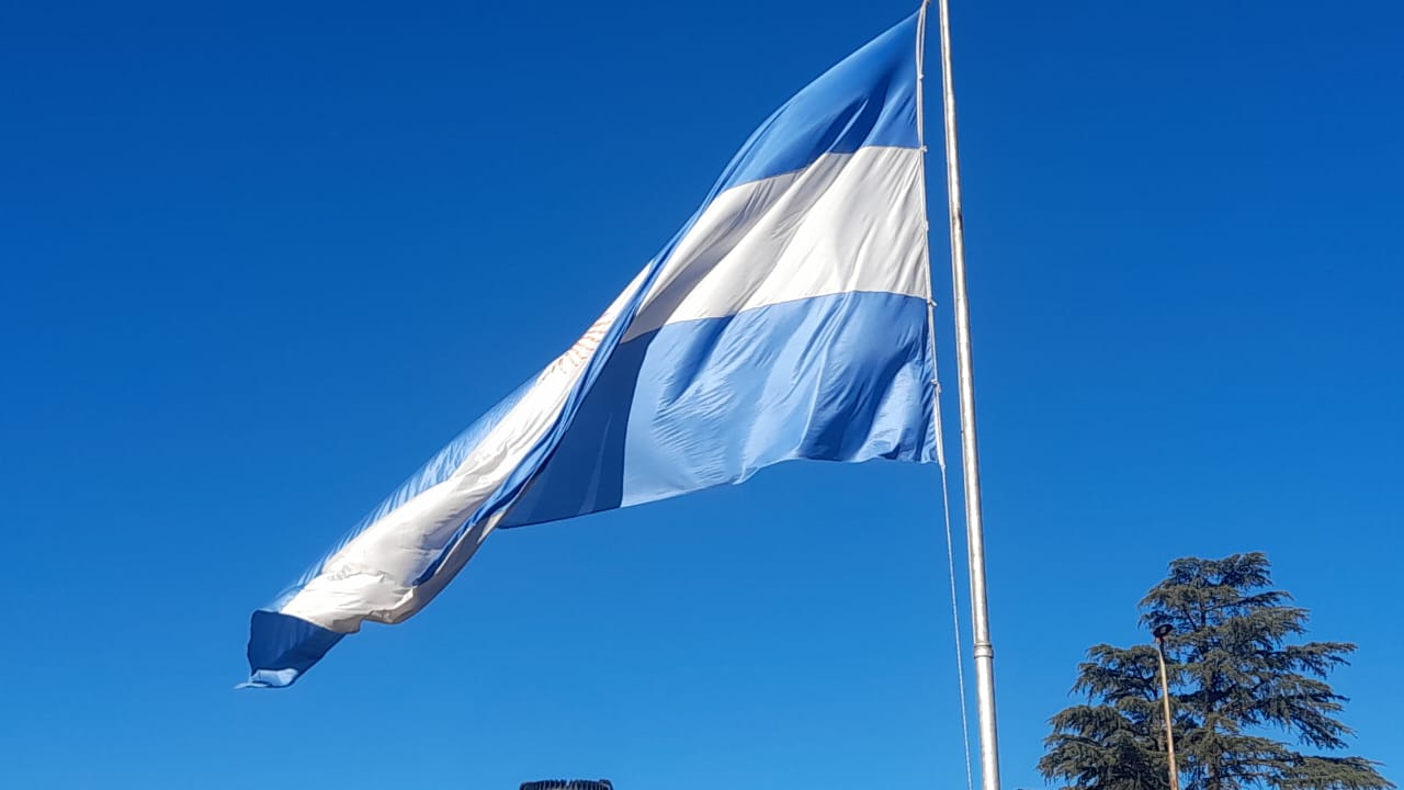Como en cada acto oficial la bandera fue llevada desde la Delegación hasta el mastil central de la plaza y se acompaño el izamiento, cantando Aurora.