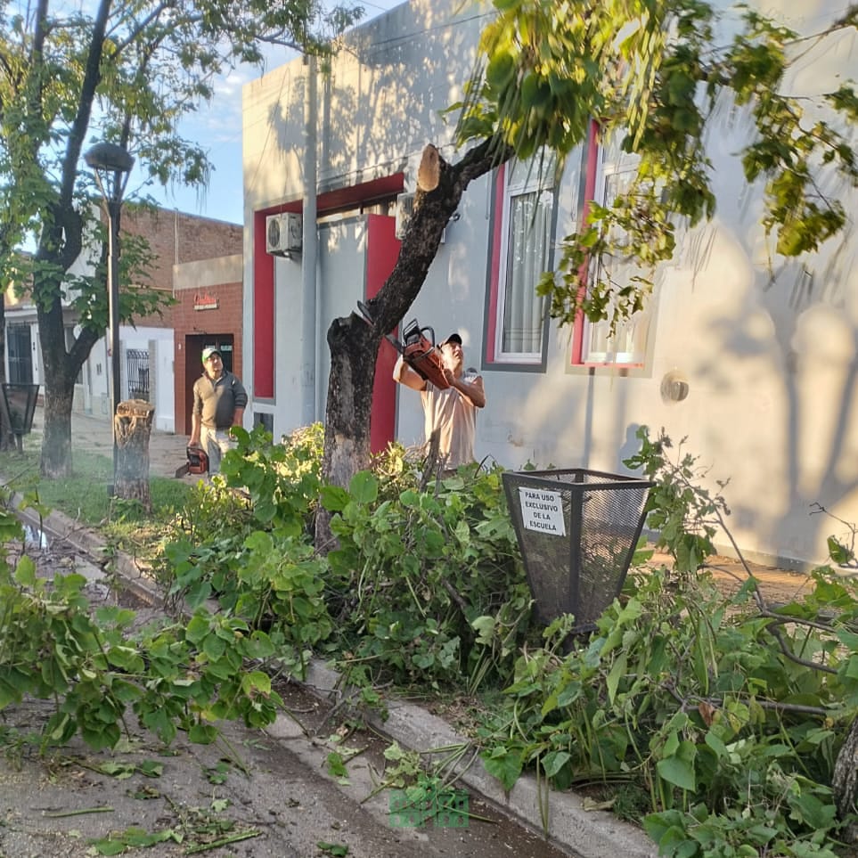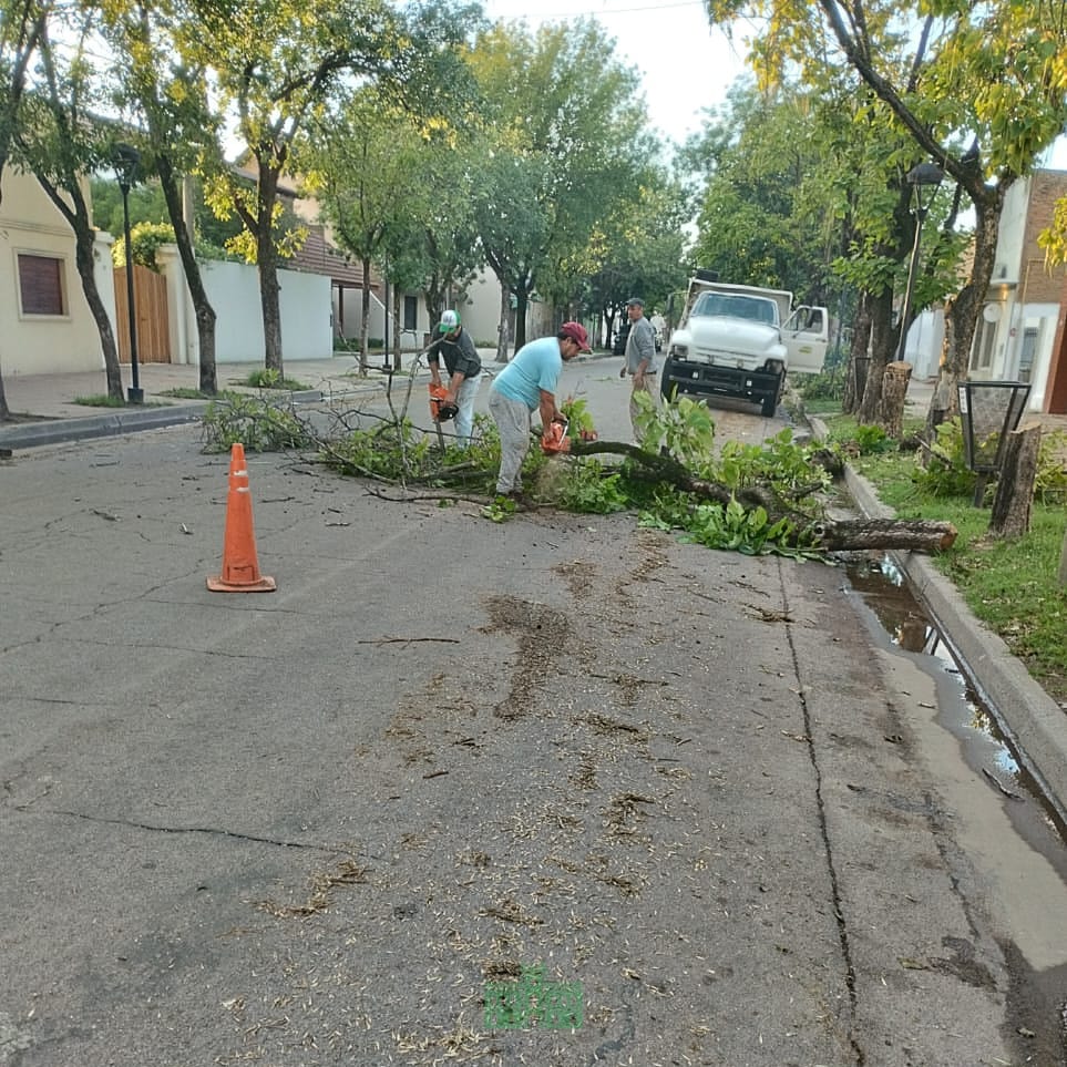 La Dirección de Espacios Verdes de la Municipalidad de Rivadavia está llevando a cabo tareas de poda y extracción de árboles, debido a la presencia de caries en la base e interior, con el objetivo de prevenir posibles caídas.