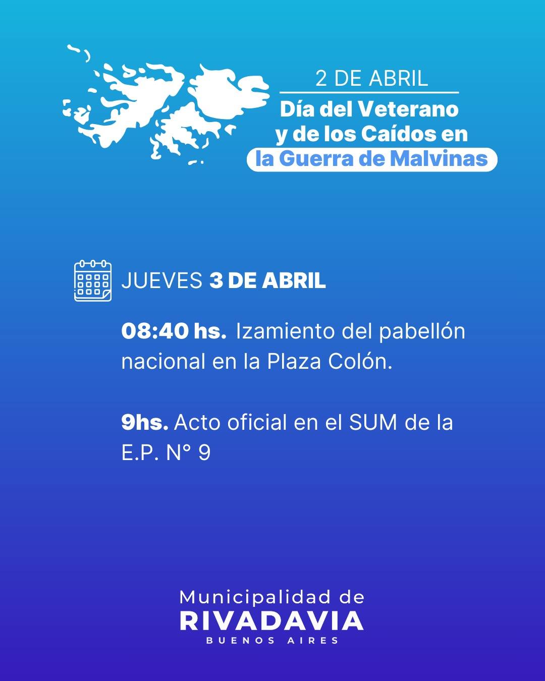 Invitamos a la comunidad a participar de los Actos por el “Día del Veterano y de los Caídos en la Guerra de Malvinas”, y charla “Recorrida por Malvinas” a cargo del Prof. Alberto Orga, que se llevarán a cabo el martes 2 y jueves 3 de abril.