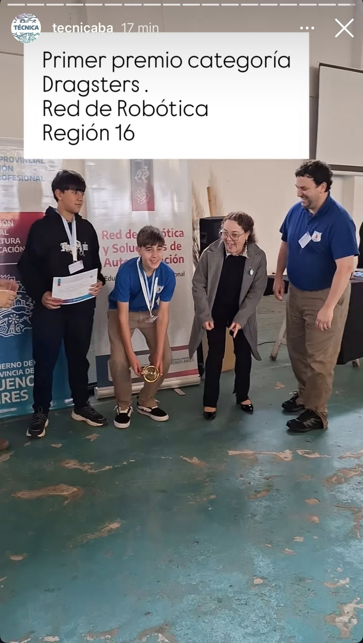 Desde la institución también destacaron “la participación distinguida de Alán Lima y Benicio Singh en la exhibición de Fútbol Robot 🏟️, y la destacada actuación de Bautista Viñales y Nicolás Carbajal en la categoría laberinto”.