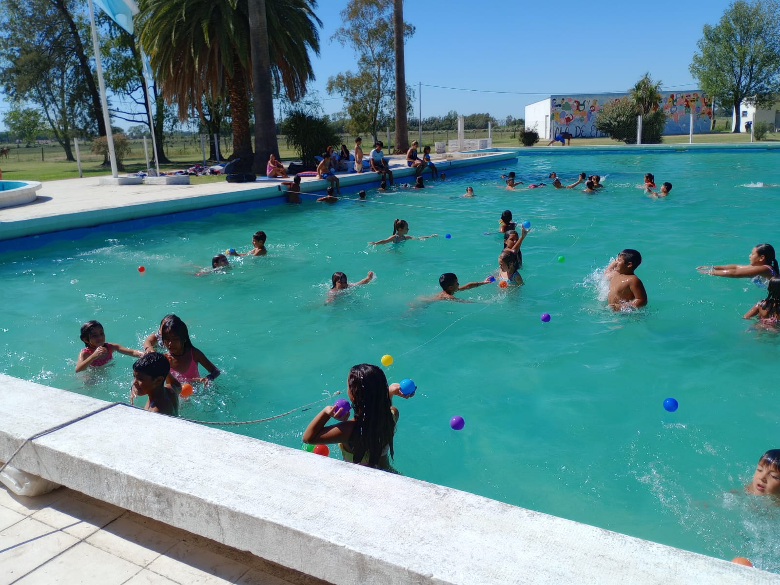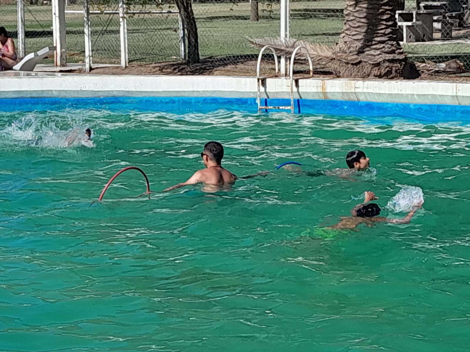 Se dividieron en grupos. El primero trabajó en el agua juegos de embocar, traslados, voley toalla, zumba, revienta globos, traslados en colchonetas, otros. Mientras tanto el otro grupo, realizó juegos fuera del agua: carrera oruga, pinturas faciales, juego embocar, zumba, revienta globos.
