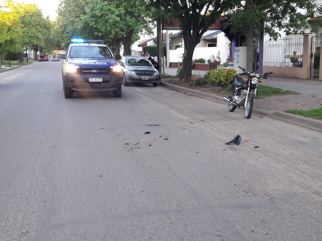 Es siniestro vial sucedió cerca de las 6 de la mañana cuando colisionaron una moto con dos ocupante y un auto. Solo hubo que lamentar lesiones leves en quienes viajaban en la moto y roturas en los vehículo.