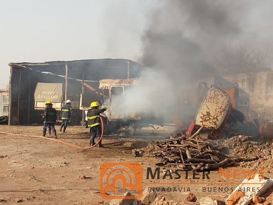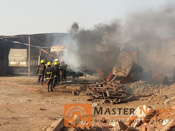 En el camión según contaron vecinos a Master News estarían trabajando cuando se desató el incendio cuyas llamas y humo podían verse a varias cuadras a la redonda.