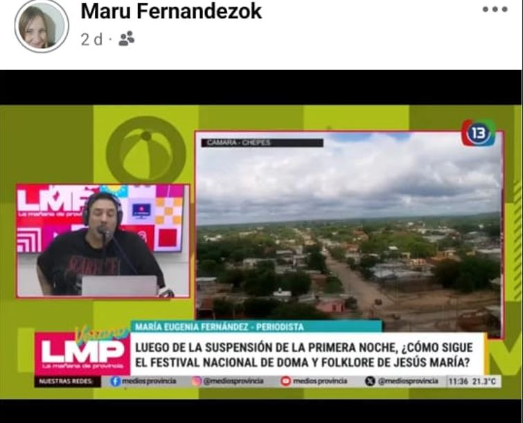 Ahora María Ugnia Fernández seguirá en Córdoba, donde será parte de la cobertura del Festival Nacional del Folklore en Cosquín.