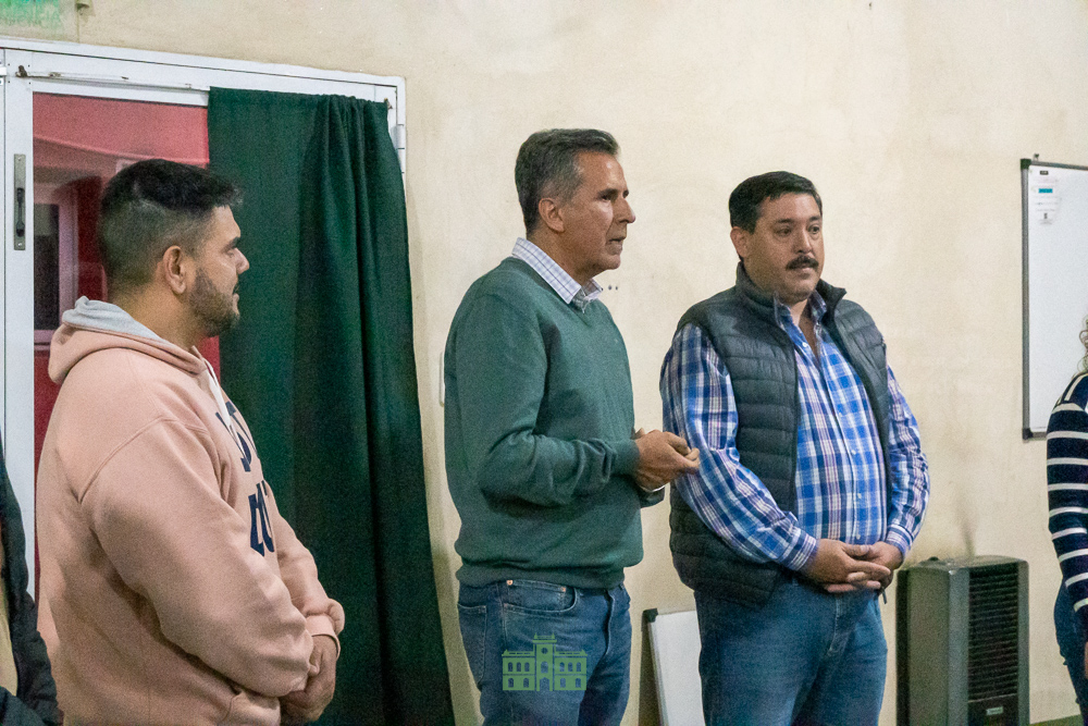 El intendente Juanci Martínez, junto a la directora de Educación Municipal, Mercedes García Duperou, la inspectora Jefa Distrital, Marta Cucurull, el director del Centro de Formación Laboral Nº401 de Rivadavia, Prof. Guillermo Santos, y el secretario Privado, Cristian Barceló, participaron en la inauguración del curso de Montador de Instalaciones de Gas Domiciliario en el Centro de Formación Laboral Nº401.