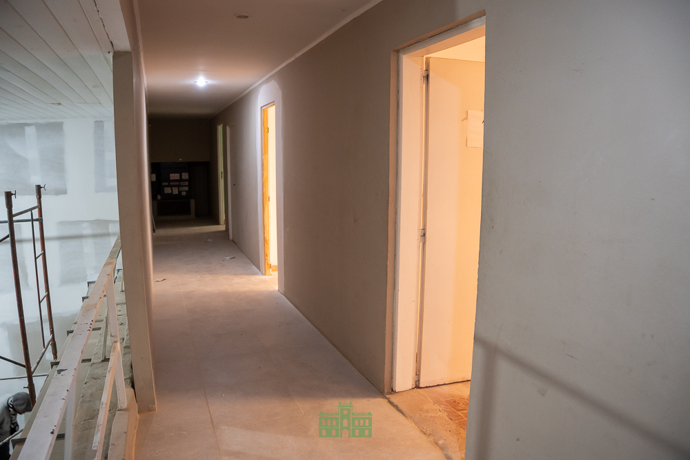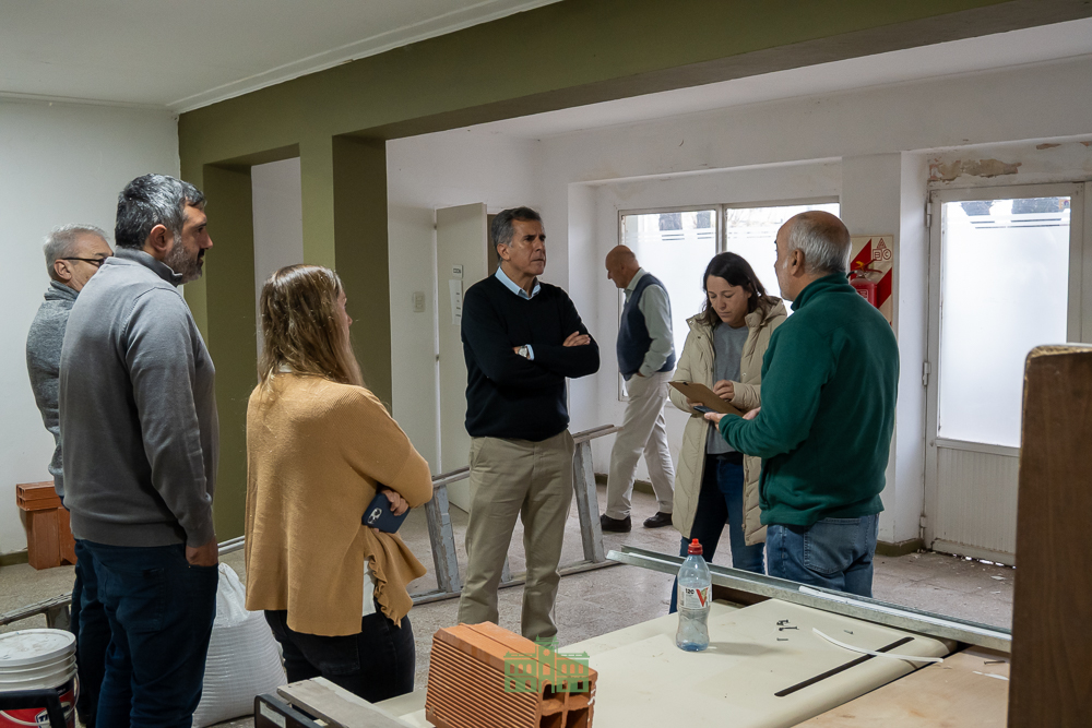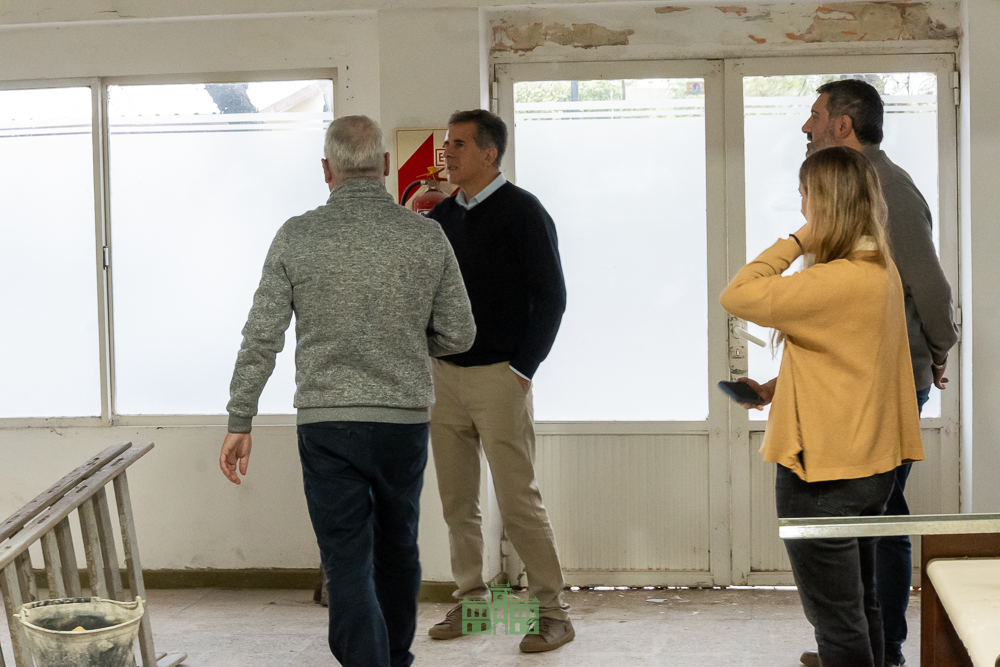 El intendente Juanci Martínez, junto al secretario de Gobierno, Sebastián Hernández, el secretario de Obras Públicas, Juan Dufourc, y la directora Técnica Legal, Ana Paula Sallaber, recorrieron las obras de la nueva sede del Juzgado de Paz de Rivadavia, que se ubicará en el ex Club Argentino.