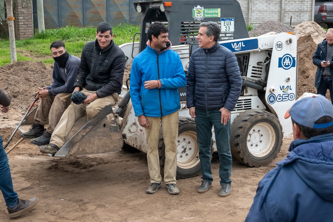 El intendente Juanci Martínez, junto al secretario de Gobierno, Sebastián Hernández, y el secretario de Obras Públicas, Juan Dufourc, recorrió los avances de la obra de cordón cuneta que se está ejecutando en la localidad de Fortín Olavarría.