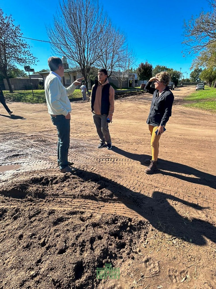 El intendente Juanci Martínez, junto a la delegada municipal Stella Kress, recorrió los avances de la obra de cordón cuneta que se está ejecutando en la localidad de González Moreno.
