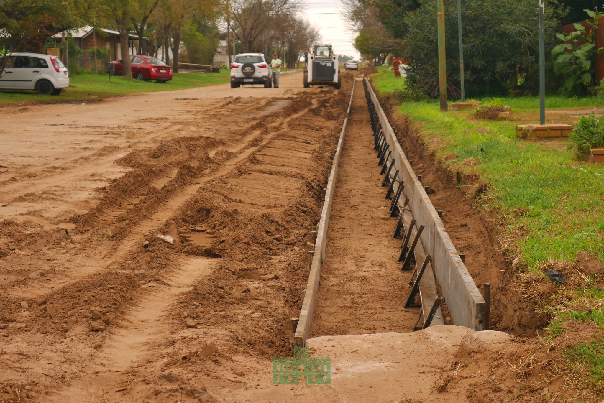 Actualmente, el personal municipal trabaja sobre la calle Mitre, entre Hipólito Yrigoyen y San Martín. Esta obra contribuye a mejorar el sistema de desagües, consolidar y delimitar las veredas, y facilitar el mantenimiento de las calles.