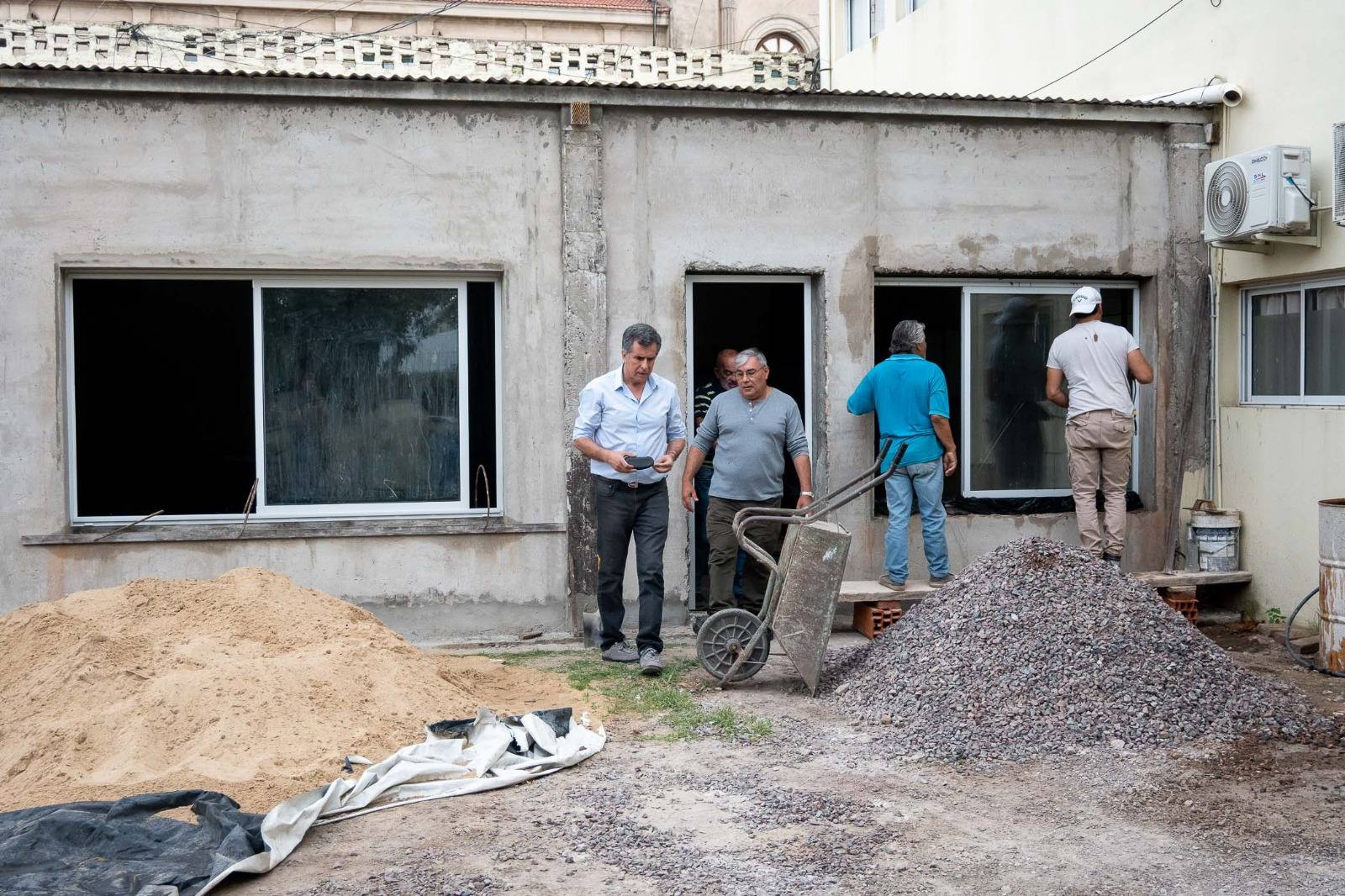 El intendente Juanci Martínez, junto al secretario de Obras Públicas Juan Doufurc, el secretario de Seguridad Sergio Rodríguez, el director de Guardia Urbana y Defensa Civil Eduardo Petitot, y el coordinador del Centro de Monitoreo Francisco Haurie, recorrieron la obra del Nuevo Centro de Monitoreo, ubicado en el predio de la calle San Martín y Marcos Cachau.