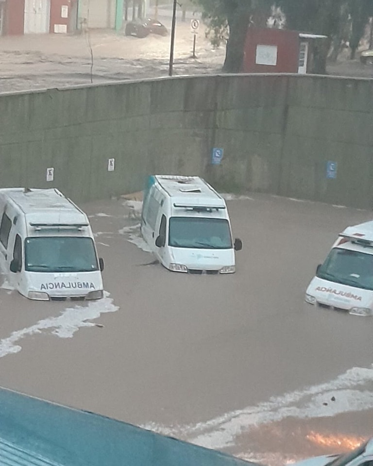 Ambulancias que se estacionaban en la cochera cerca de Lainez y Necochea se veían inundadas, así como otros vehículos que se vieron afectados.