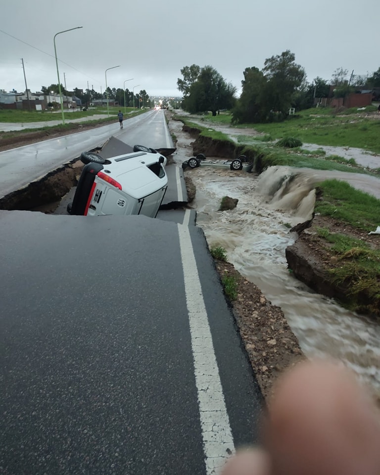Las lluvias comenzaron, según medios locales, a las 4 de la madrugada. Calles como ríos, autos varados y repletos de agua, casas inundadas y hasta el Hospital Interzonal Dr. José Penna lleno de agua, son algunas de las dramáticas postales del temporal.