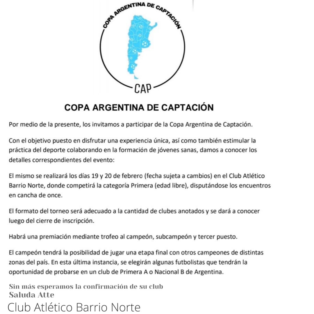 Para resaltar es que Barrio Norte será una de las 37 sedes que buscarán talentos a lo largo y ancho de Argentina y que le dará la posibilidad a chicas de Rivadavia y la zona de poder cumplir el sueño de jugar al fútbol en otro nivel de competencia.-