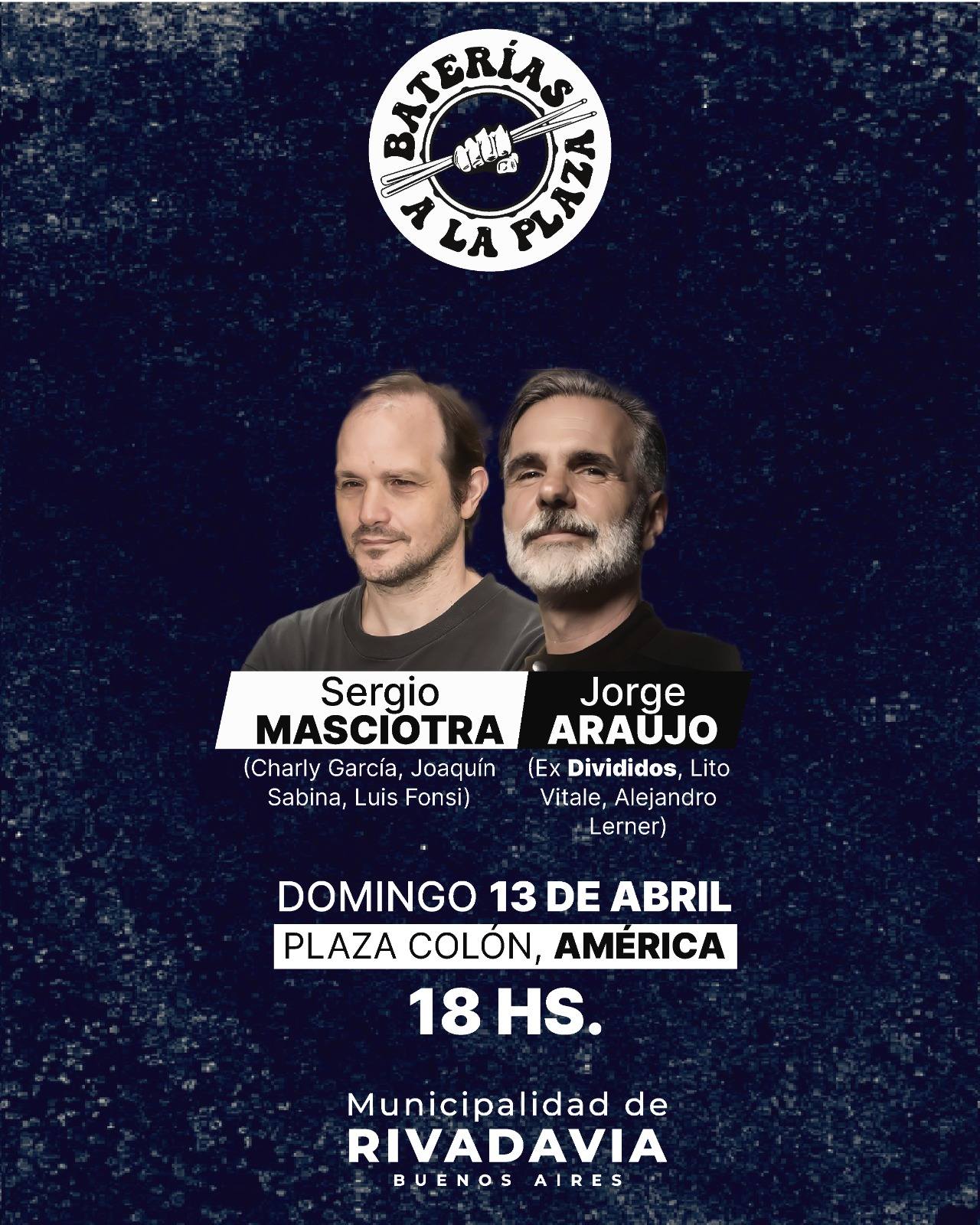 🥁 Después del éxito de la primera edición, vuelve a la plaza Colón de América el taller a cargo de Sergio Masciotra (La Carga) y Jorge Araujo (Ex-Divididos).