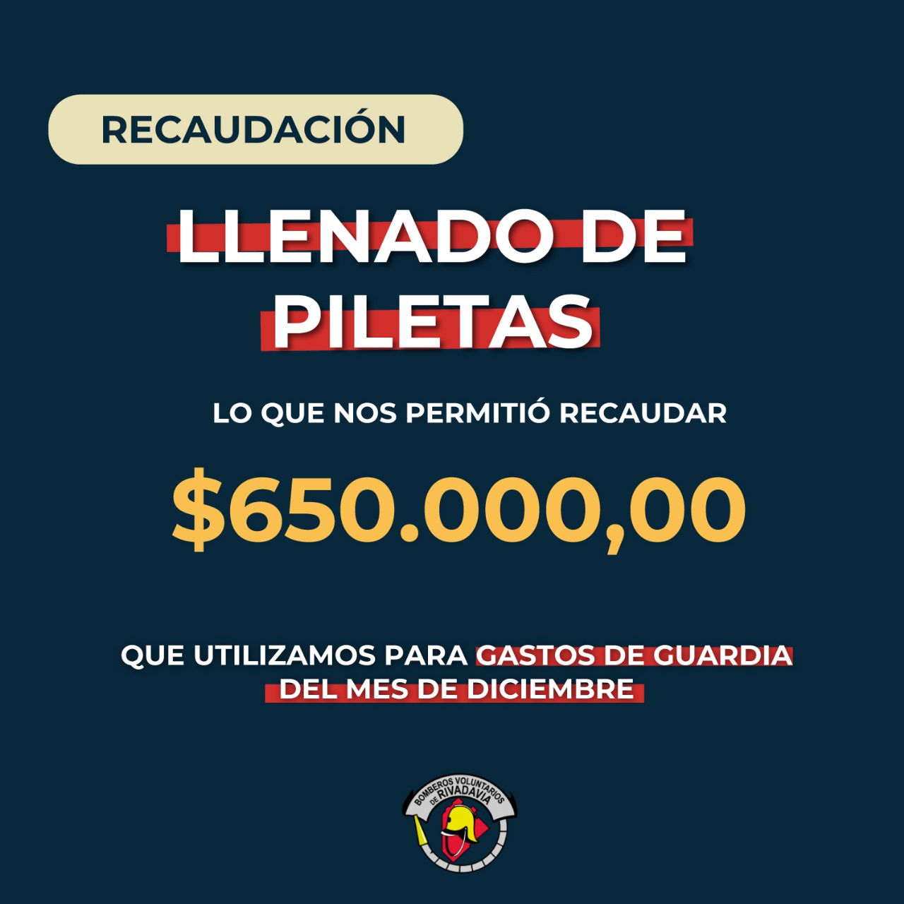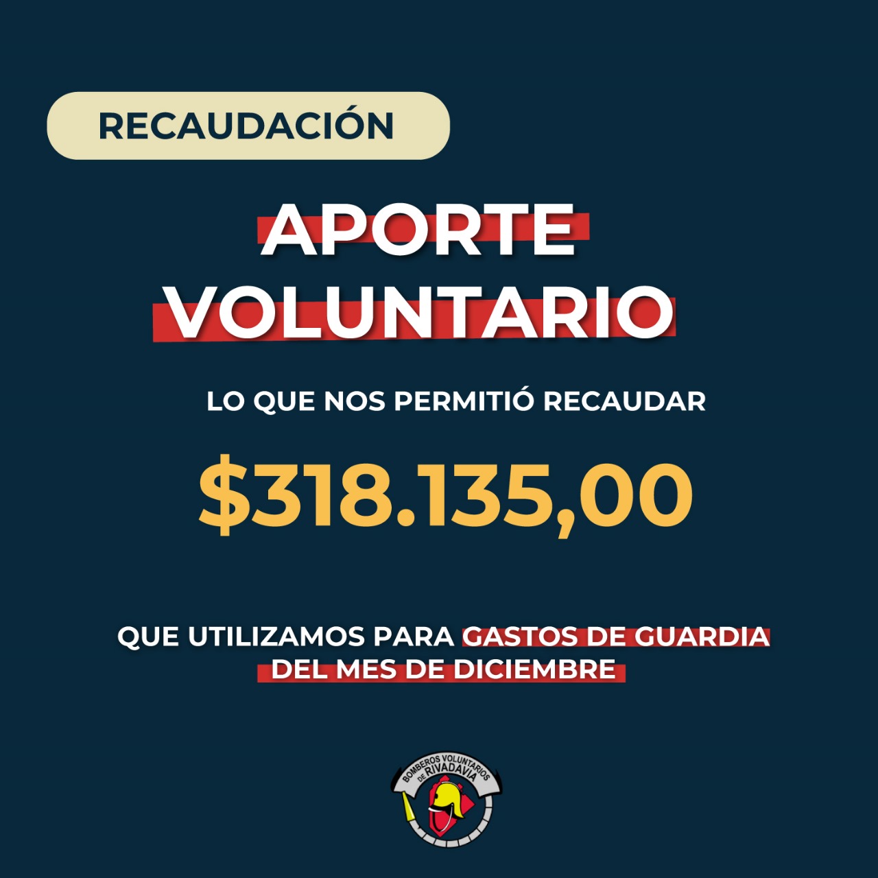Bomberos Voluntarios de Rivadavia dio a conocer los gastos del mes de diciembre 2024