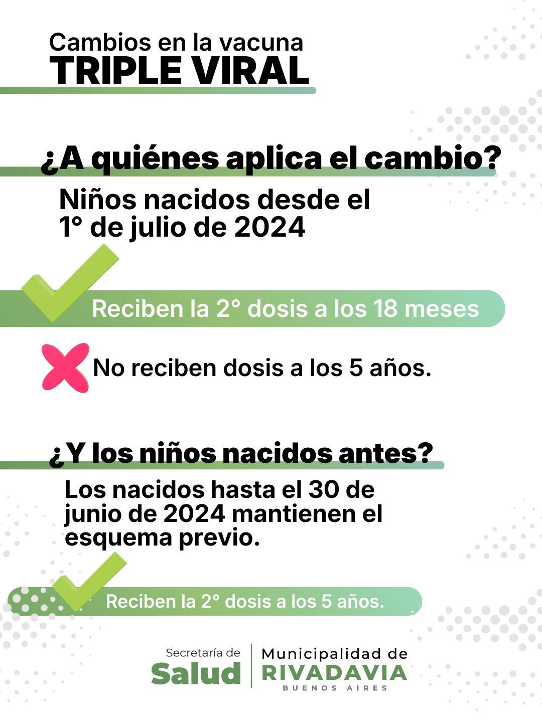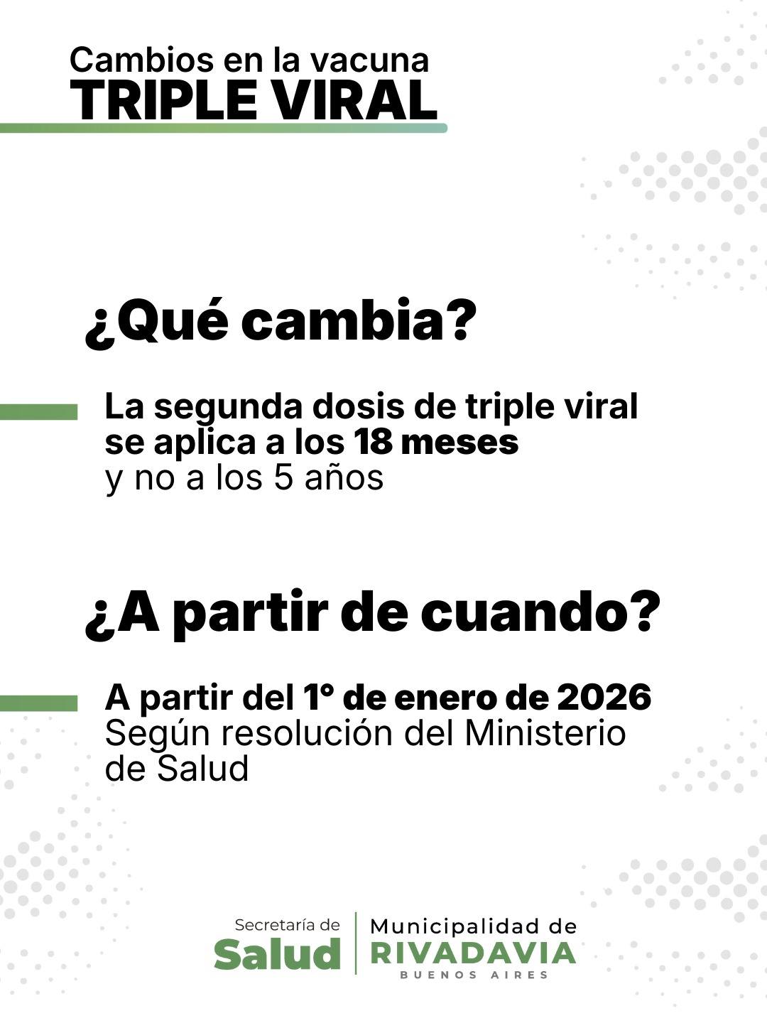 🔹 La segunda dosis de la triple viral se aplicará a los 18 meses