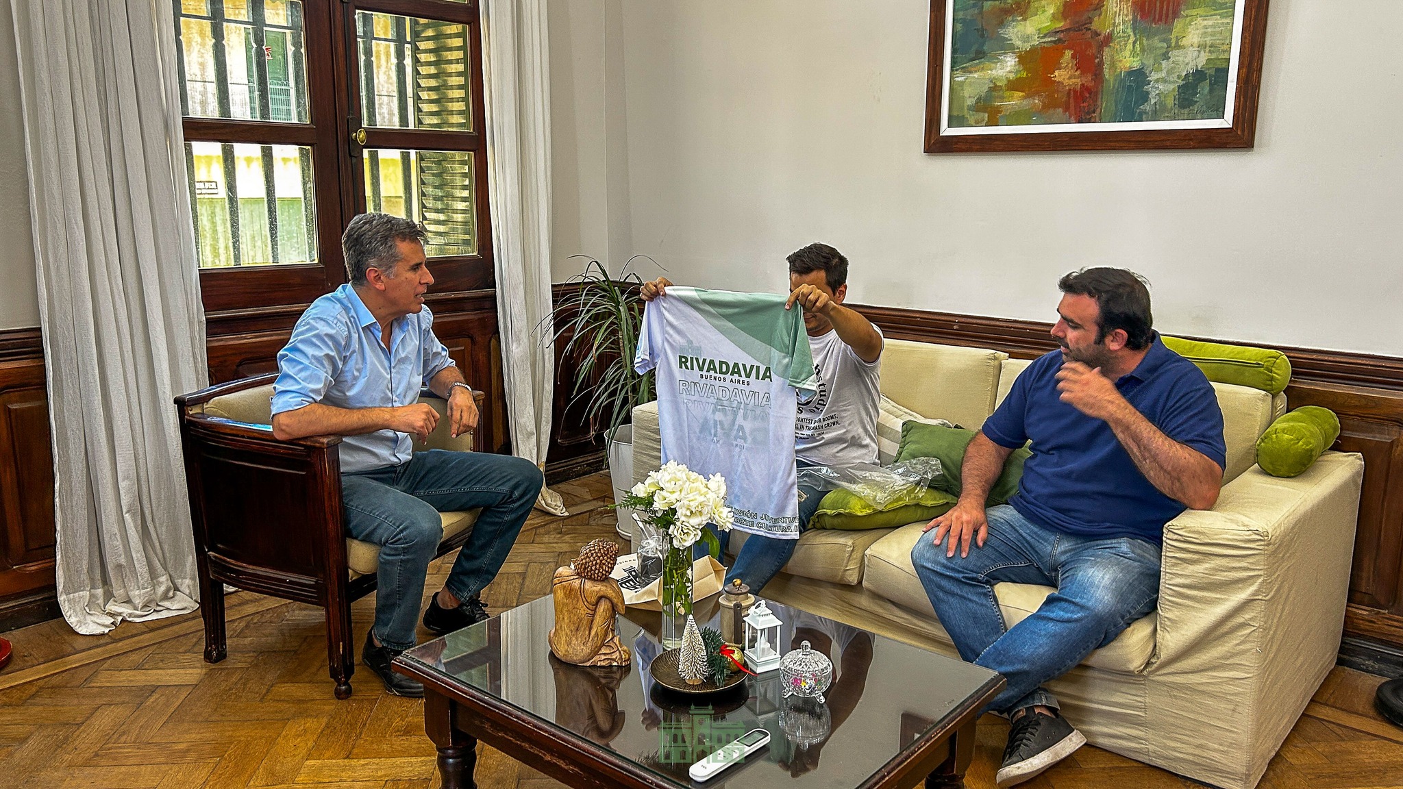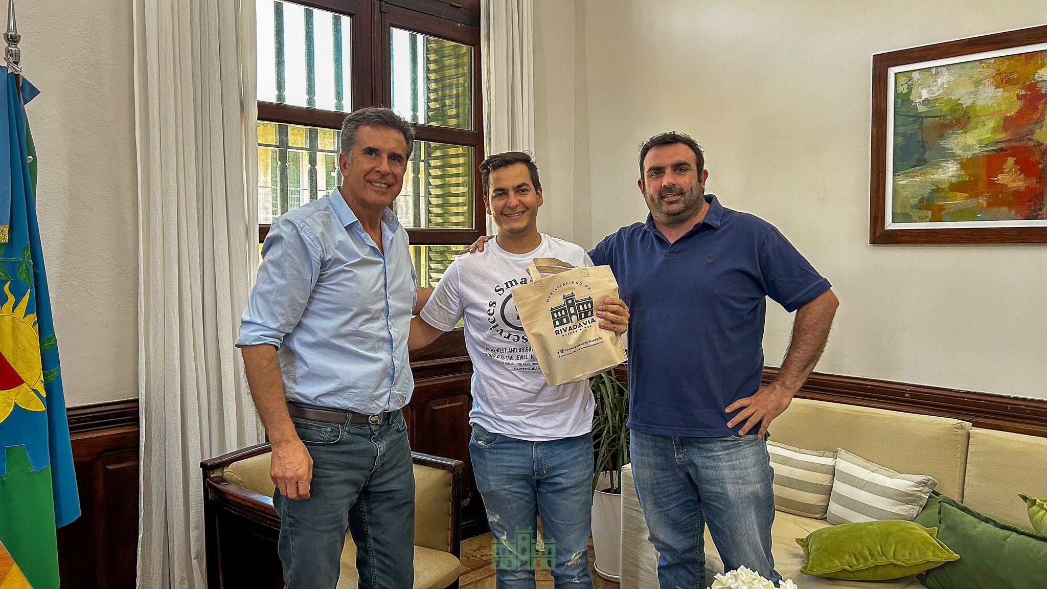 El intendente, Juanci Martinez y el director de Deportes, Edgardo Martinez, se reunieron con el piloto rivadaviense Juan Cruz Piorno, tras su reciente consagración como Campeón en el Zonal 2000 Pampeano.