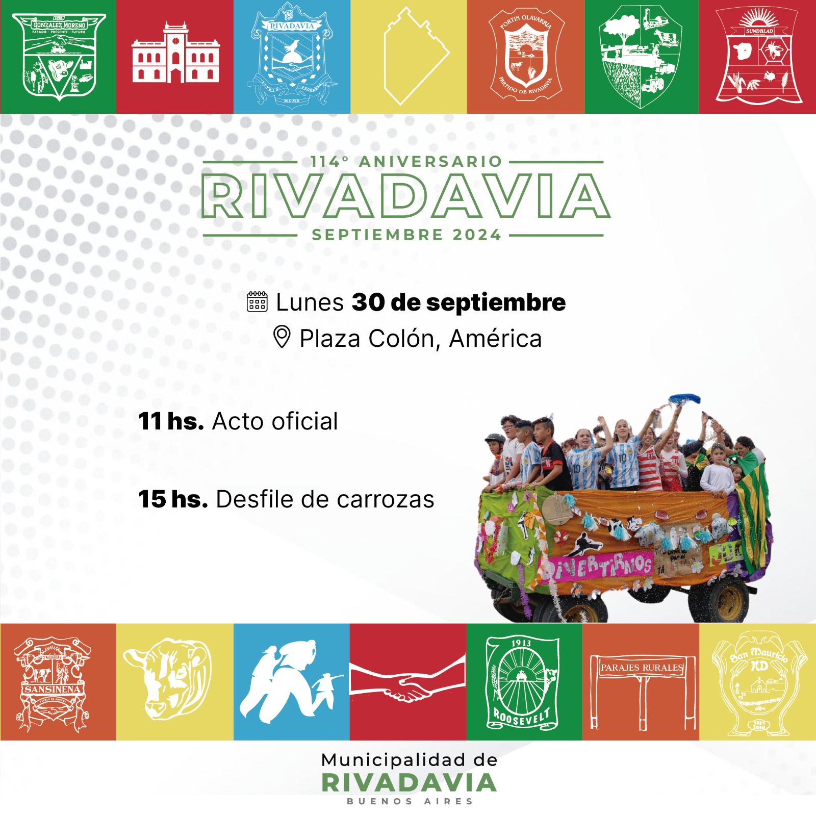 🎉 Se acerca un nuevo Aniversario del distrito de Rivadavia, y lo festejamos a lo grande junto a nuestros vecinos.