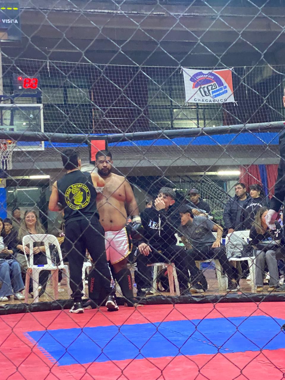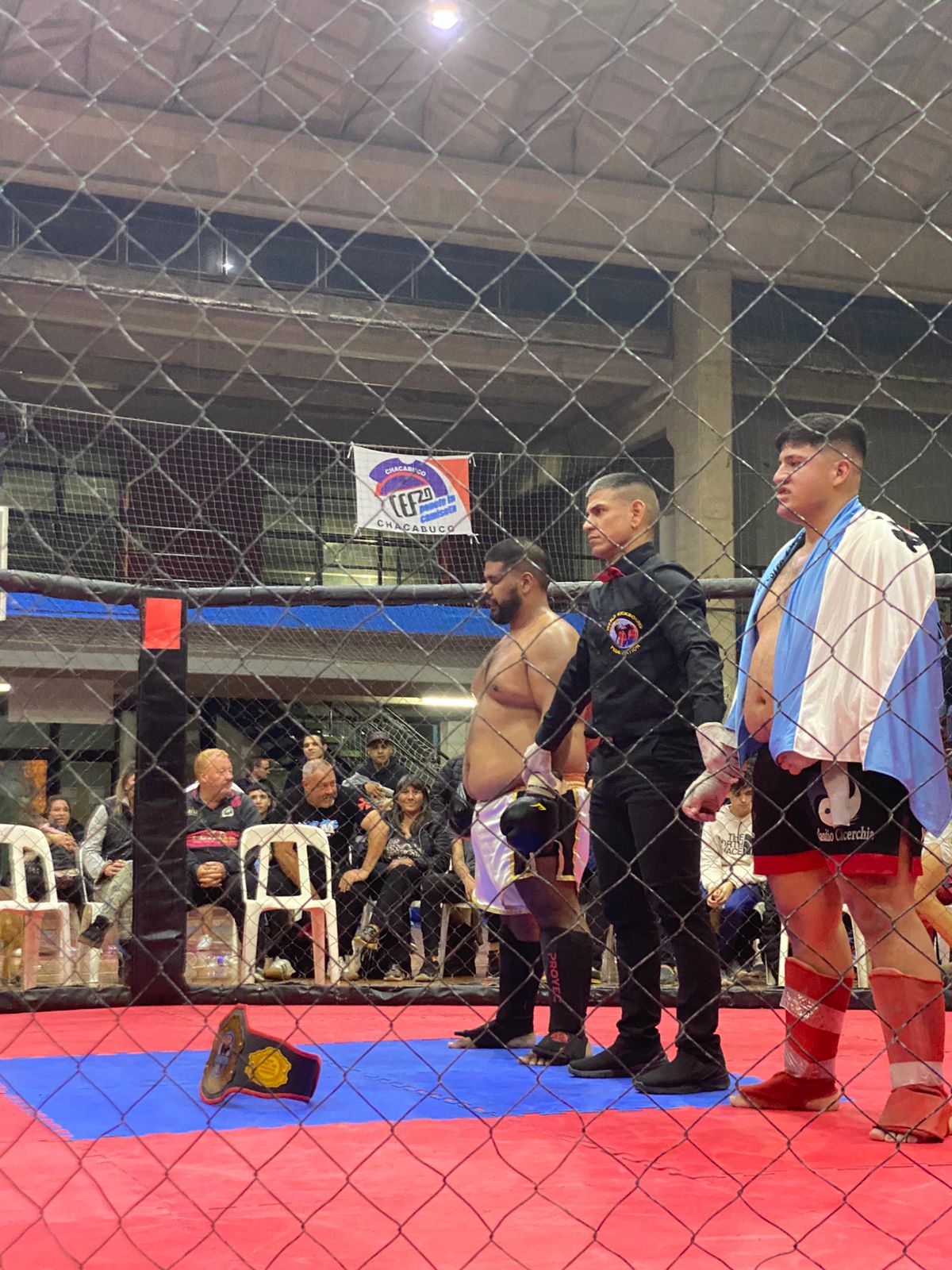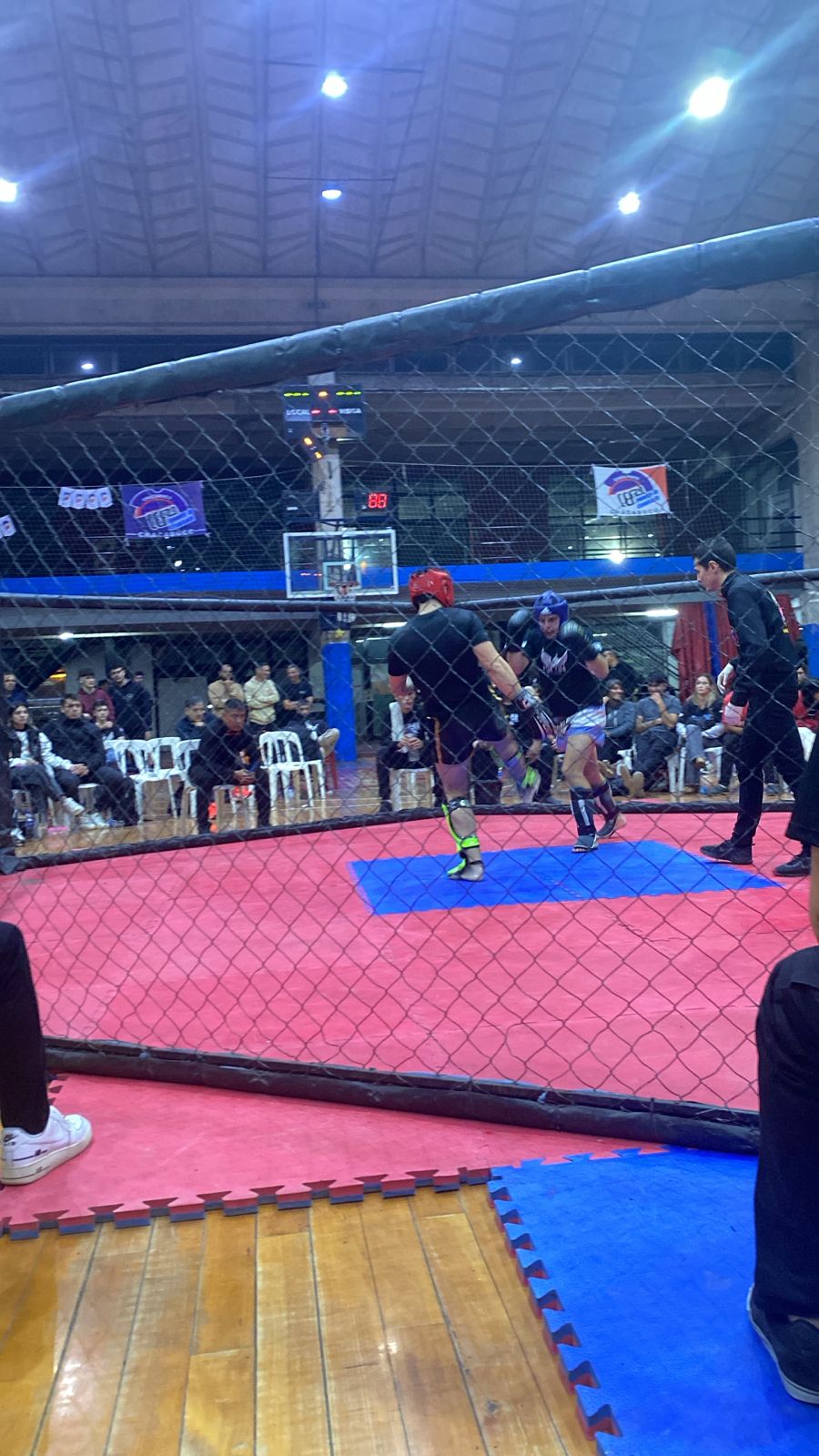 El último en subirse a la jaula realizando la pelea de semi fondo fue el profesor Roberto Leguizamon, disputando el título regional WKF vs Luciano Linares de Junin donde perdió el ricvadaviense en las tarjetas en un combate muy reñido.
