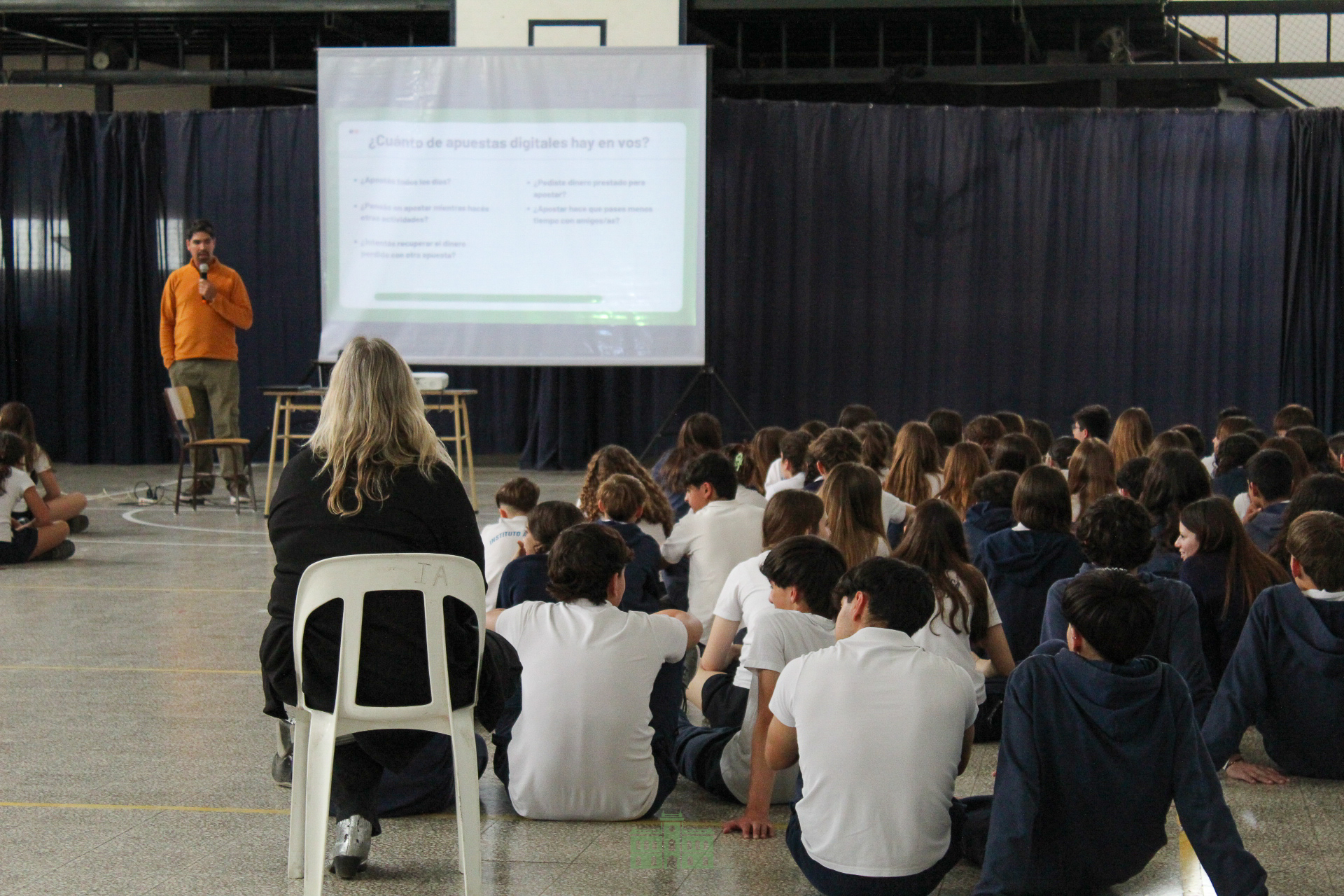 🗣️ Esta semana el secretario de Salud municipal, Jorge Gayoso junto al director de Tecnología, Guillermo Acosta y la concejal Lucía López, brindaron la charla “¿Qué te jugás? Apuestas online: cuando el juego se convierte en una enfermedad” a alumnos de nivel secundario del Instituto América.