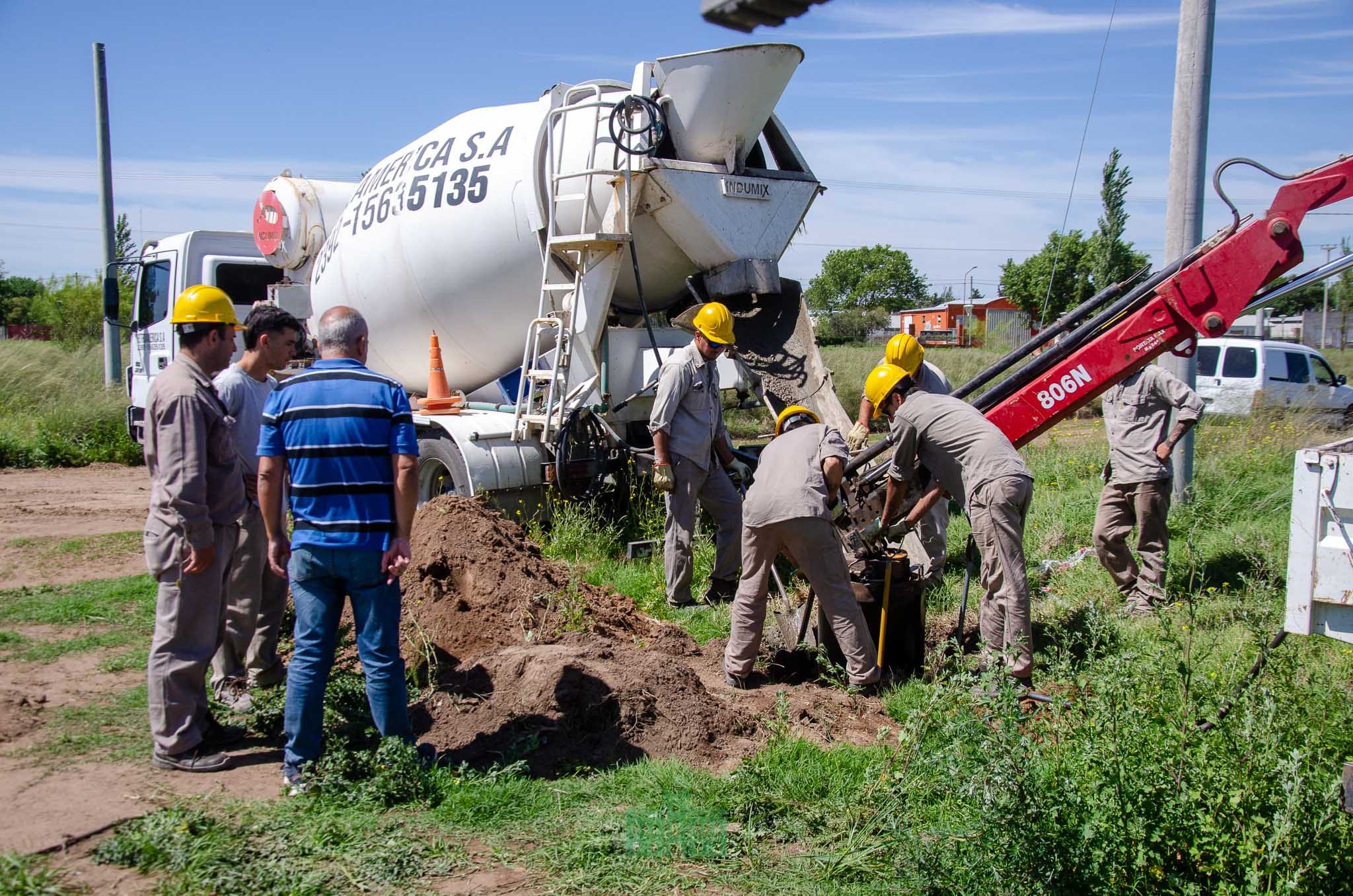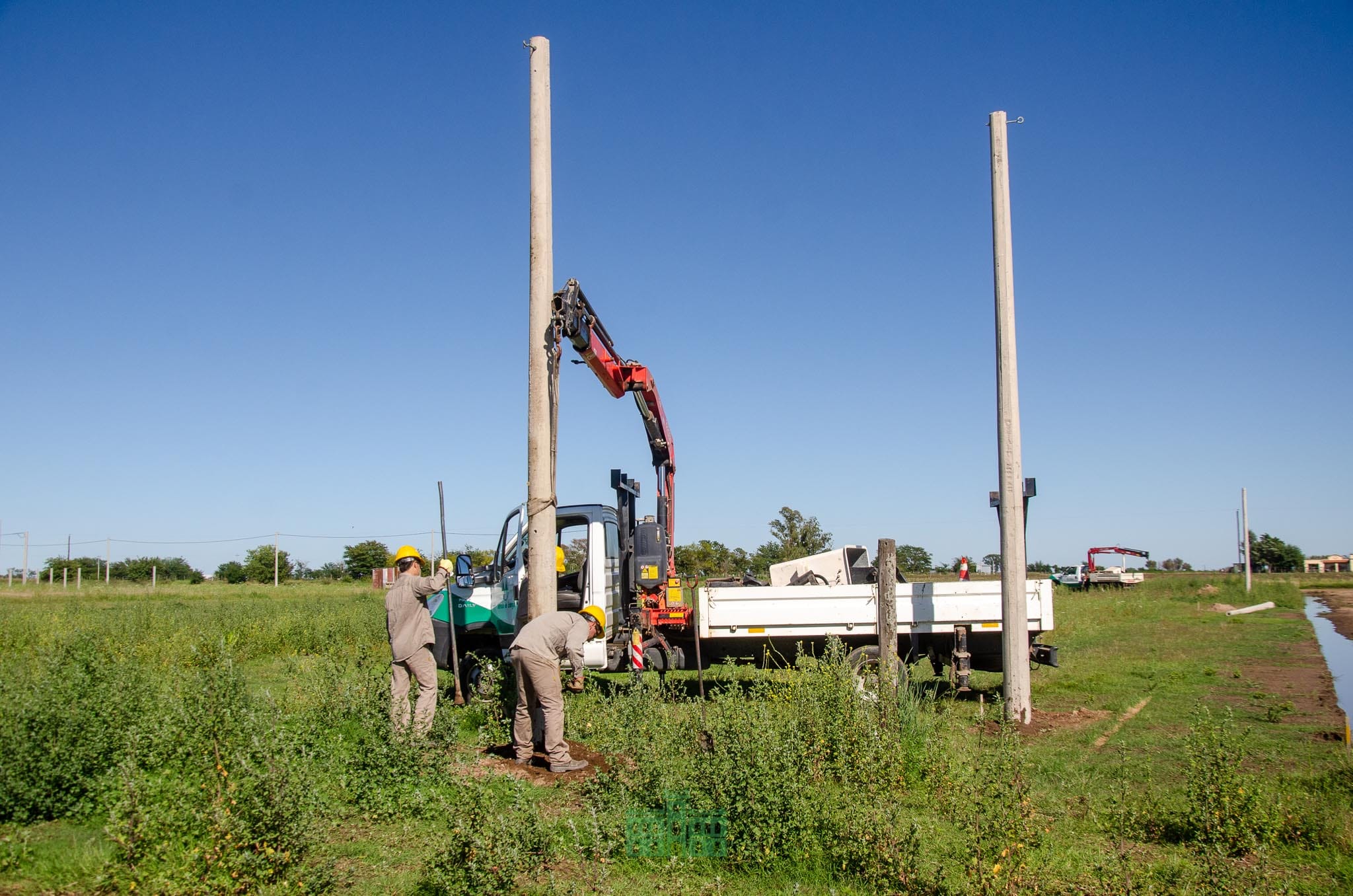 Las tareas se iniciaron con la colocación de las primeras columnas, que harán de soporte para el tendido de los cables eléctricos, y permitirán brindar el servicio al futuro nuevo barrio.