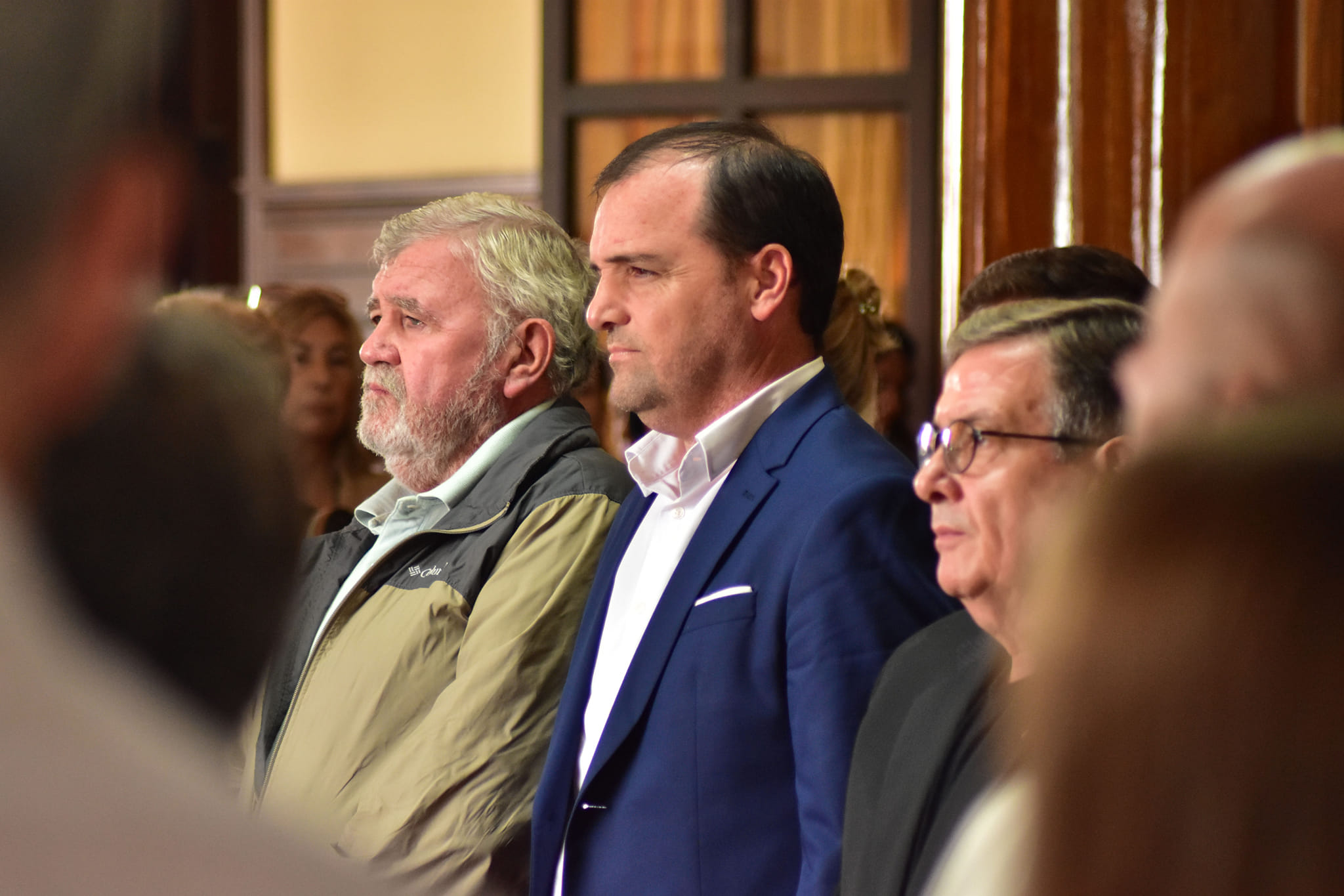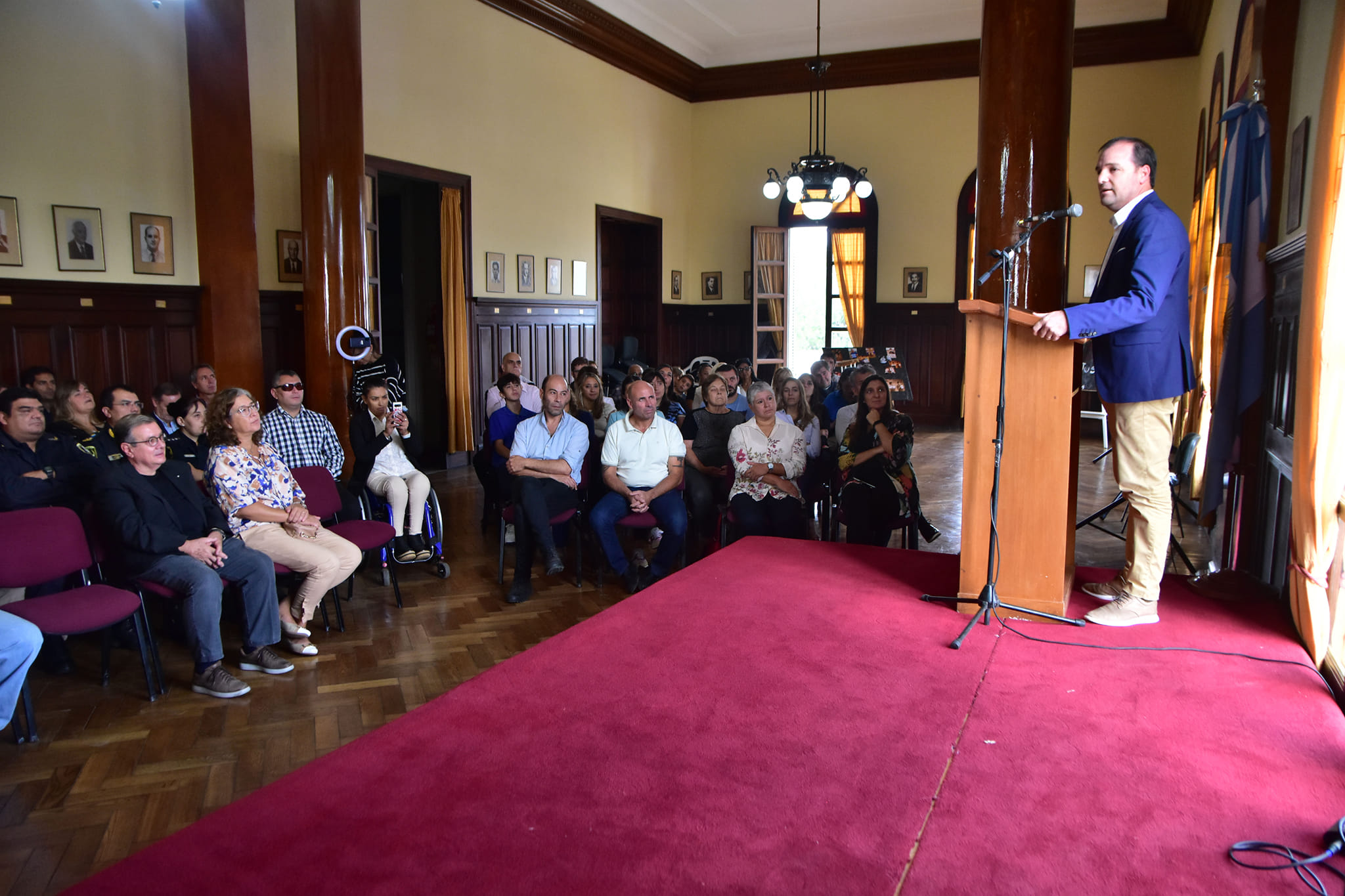 la Presidente del Honorable Concejo Deliberante, Lic. Marcela Lescano y Concejales, la Presidente del Consejo Escolar, prof. Silvina Melloni y Consejeros Escolares, el Jefe Distrital de Rivadavia, Comisario Inspector Javier Pérez y autoridades policiales, la Inspectora Jefe Distrital, Prof. Marta Cucurull e inspectores de área. secretarios, funcionarios y delegado, ex Intendentes y ex Concejales, docentes, alumnos, integrantes del Espacio de Derechos Humanos de Rivadavia y vecinos de la comunidad