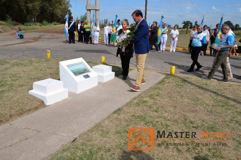 Acto seguido el Intendente Municipal Javier Reynoso, el Vice Presidente del HCD Fabio Aurnague y los ex conscriptos Alfredo Buil y Alberto Julio colocaron una ofrenda floral y dos cascos de ex combatientes en el Monumento.