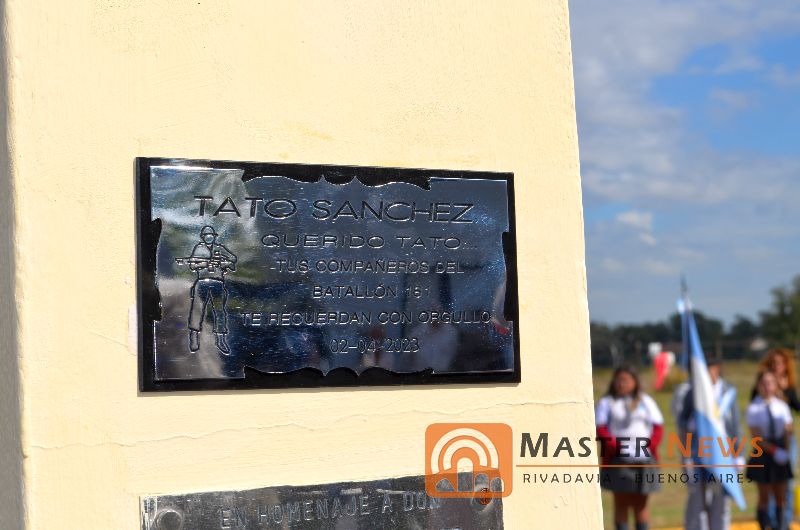 Seguidamente los ex integrantes del Batallón 181 junto al mandatario comunal descubrieron una placaen homenaje a su compañero Tato Sánchez, para lo cual fueron invitados a participar sus hijos Luis e Imanol.