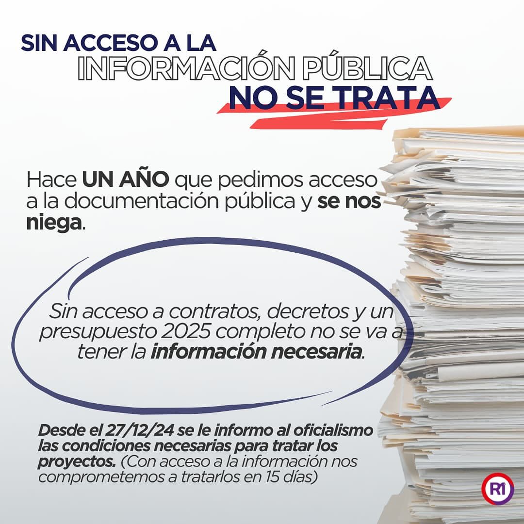 La agrupación municipal afirmó que “es imposible tratar los proyectos de impositiva y fiscal si no se cuenta con la información completa”. En diciembre el bloque opositor solicito que para el tratamiento de ambos proyectos se requería contar con acceso a los contratos, decretos y al presupuesto 2025 completo.