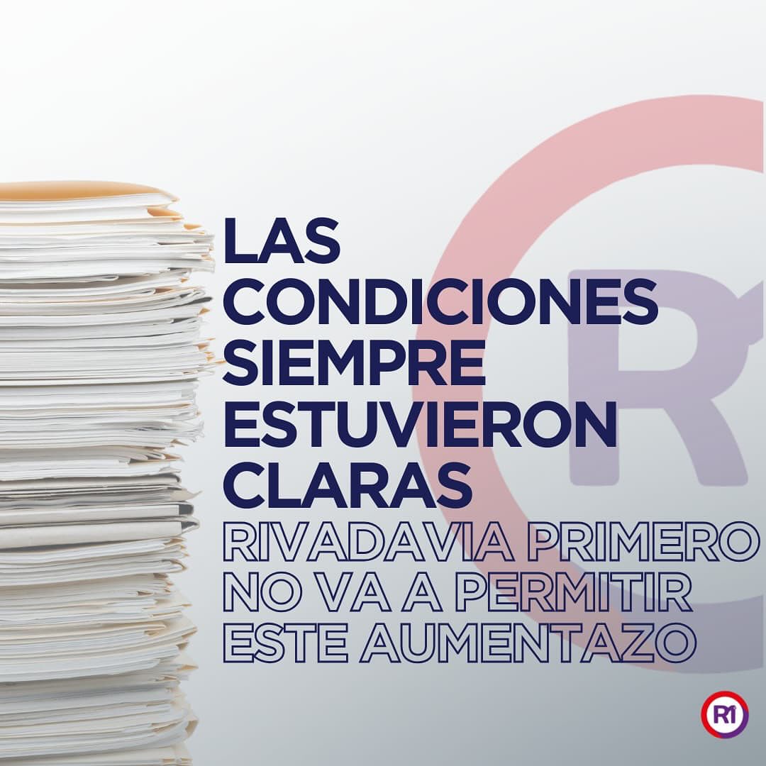 En las últimas horas, Rivadavia Primero a través de una publicación en sus redes sociales sostuvo que no acompañará el gran aumento de las tasas, y que solo accederan a comenzar a discutirlo si el ejecutivo da acceso a la información pública que desde el año pasado solicitan. Si se cumplen las condiciones la agrupación local se comprometió a tratarlo dentro de los 15 días.