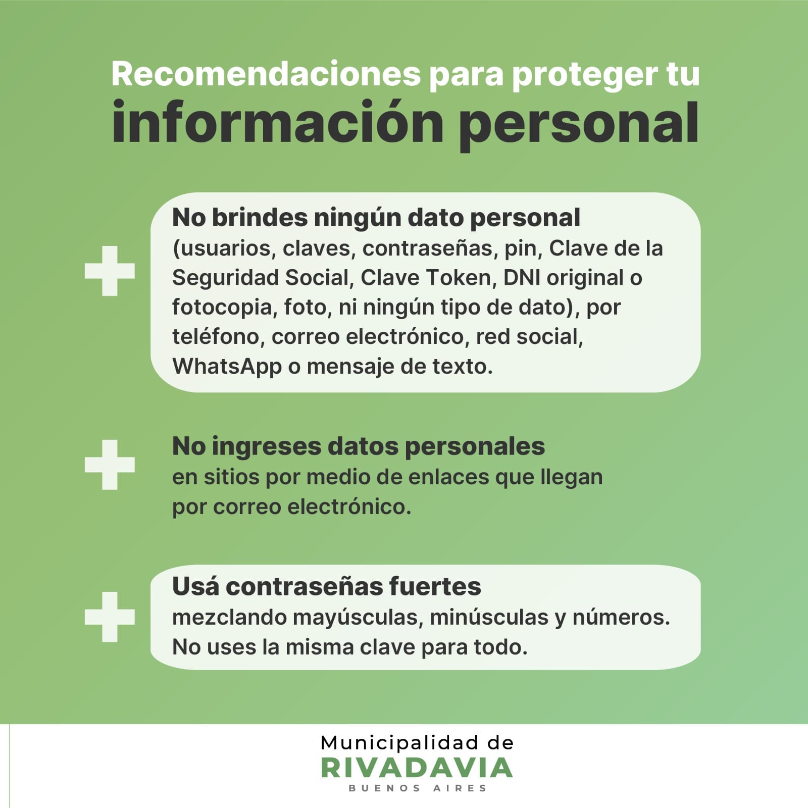 🔸 No brindes ningún dato personal por teléfono, mail, red social o SMS