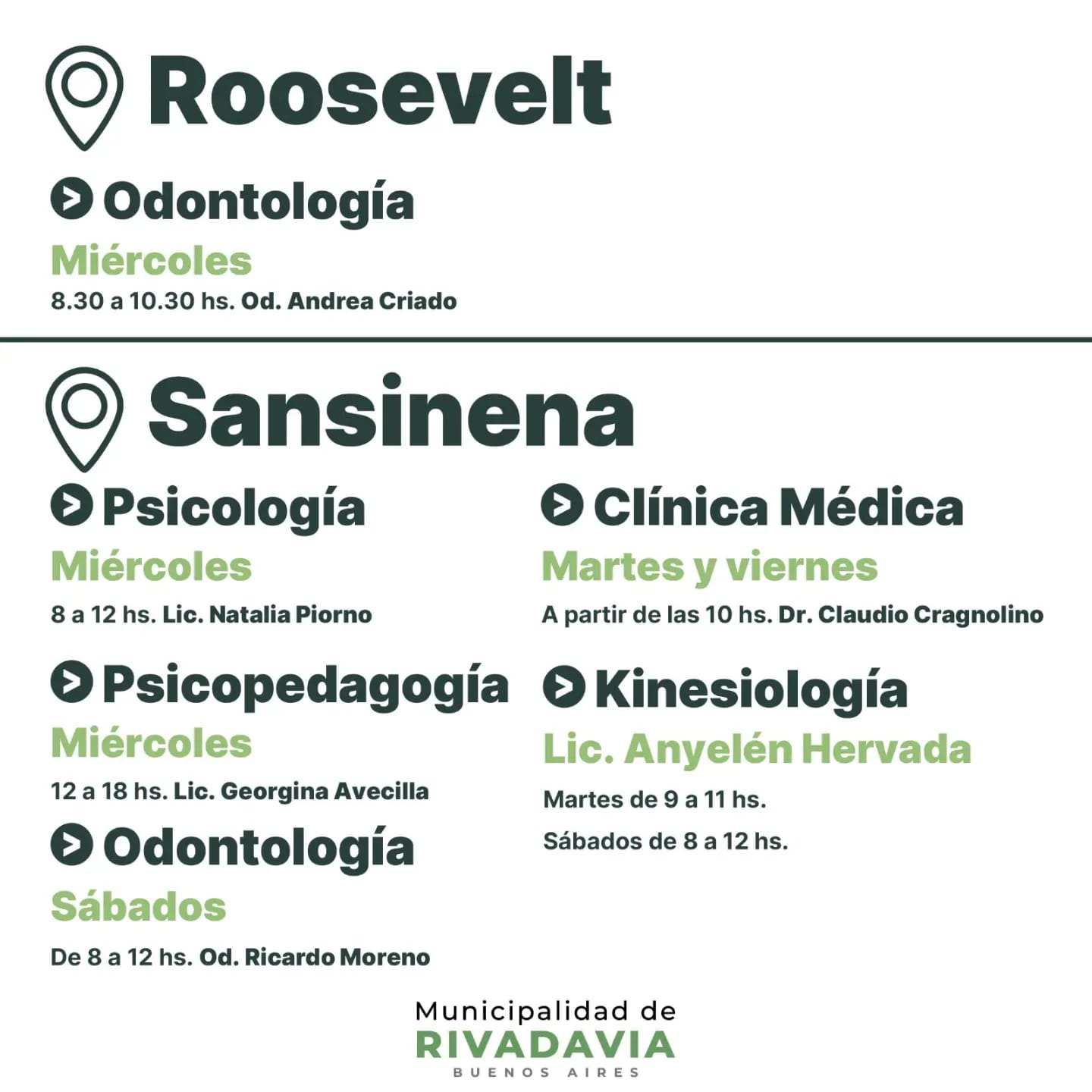 ⏰ Conocé los días y horarios de atención de profesionales de la salud en las diferentes unidades sanitarias de nuestros pueblos.