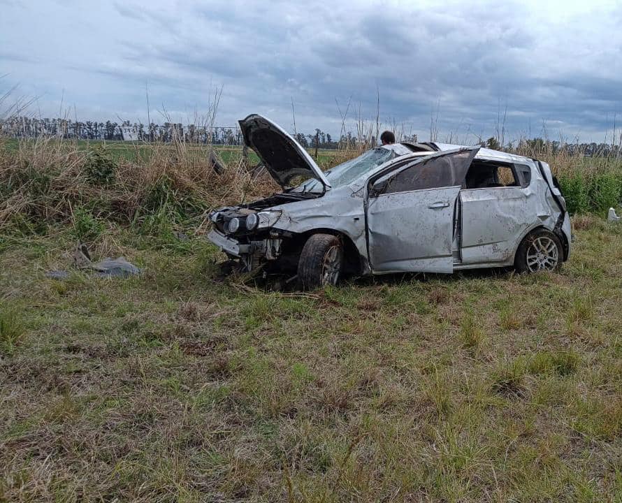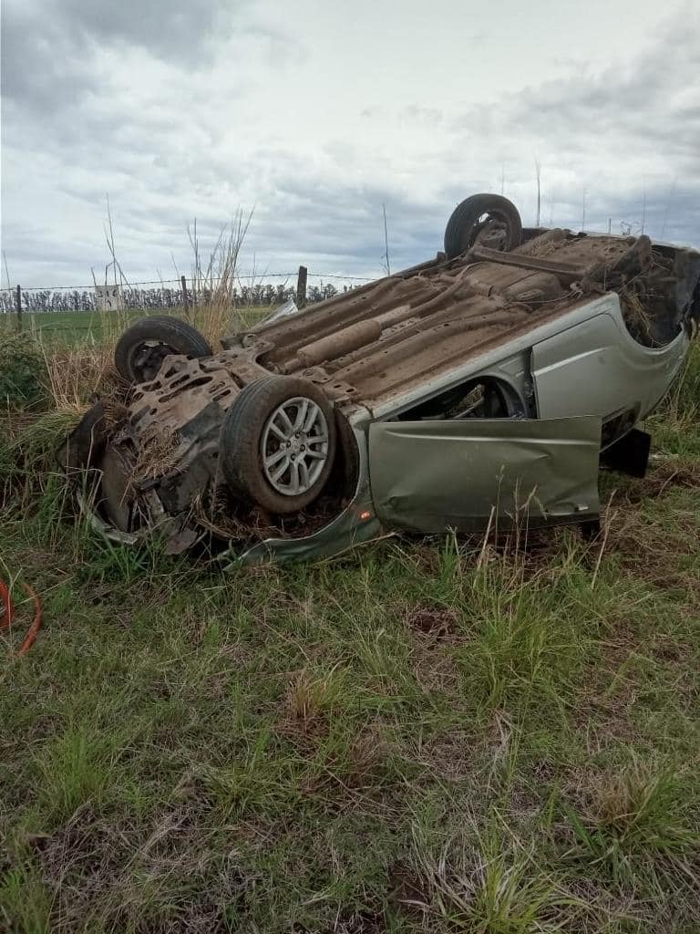 El siniestro vial se produjo sobre ruta nacional 188 a la altura de Laguna La Prida donde un automóvil con cuatro mujeres que procedía desde América volcó. Tres de ellas pudieron salir del vehículo por sus propios medios y otra fue retirada por Bomberos Voluntarios.