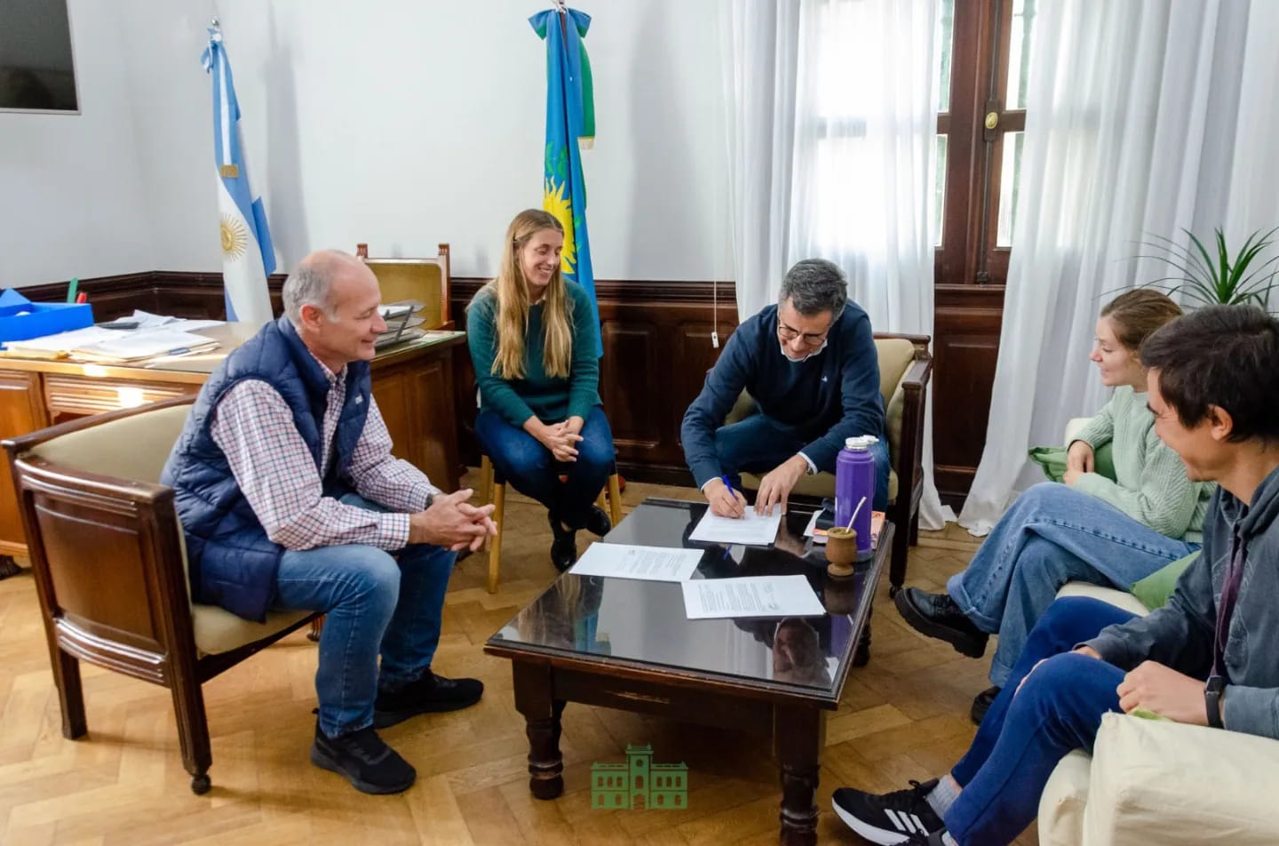 ✍🏻 El intendente Juanci Martínez, junto a la directora técnico legal, Ana Paula Sallaber, y la directora de políticas de Juventud, Abigail Hillcoat, se reunieron con autoridades del Instituto América, para firmar un convenio que permitirá la incorporación de 6 nuevos pasantes a la Municipalidad de Rivadavia.