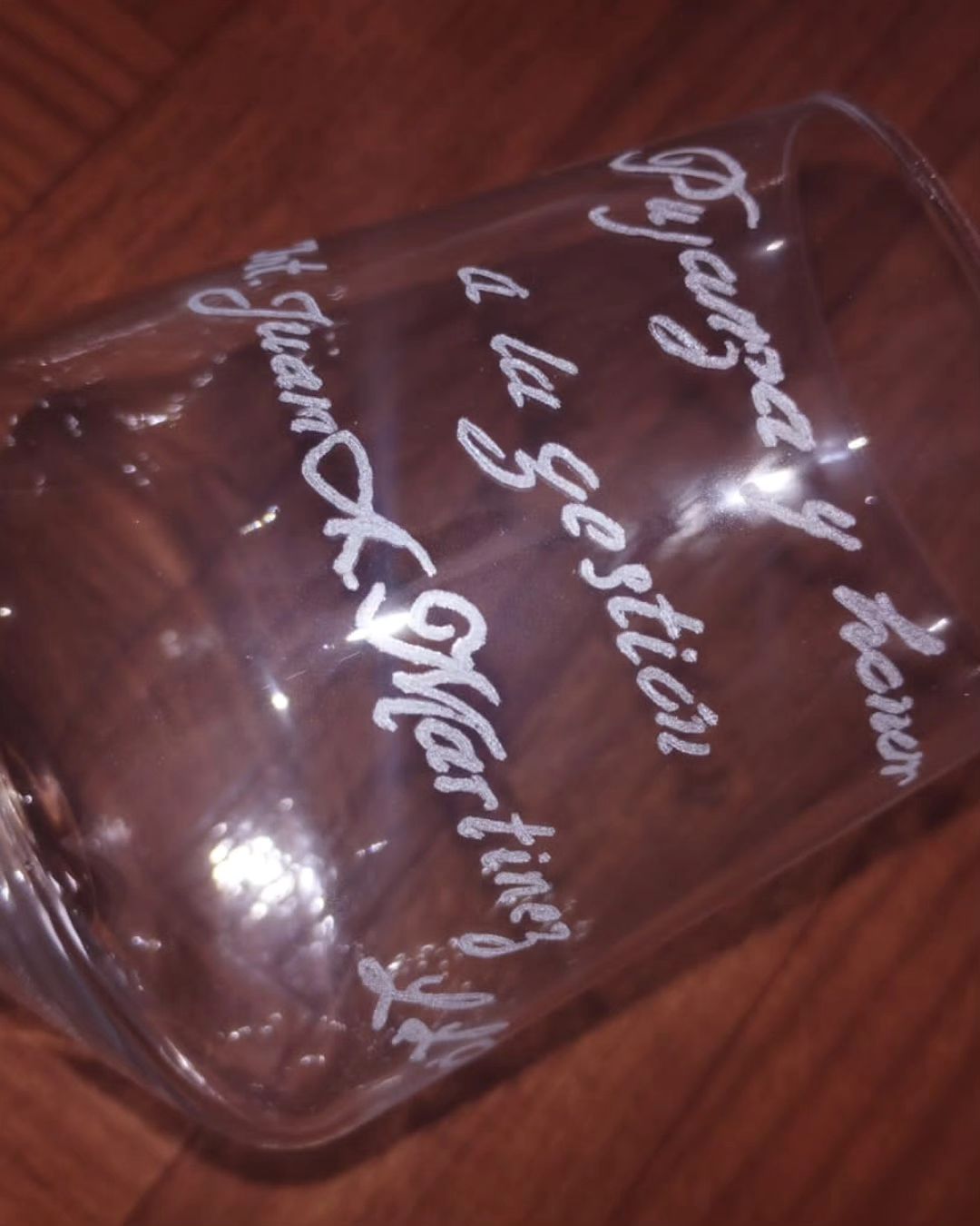 A modo de presente le entregaron al Intendente una copa con la frase “Pujanza y honor a la gestión, Dr. Juan A. Martínez” y una botella de vino