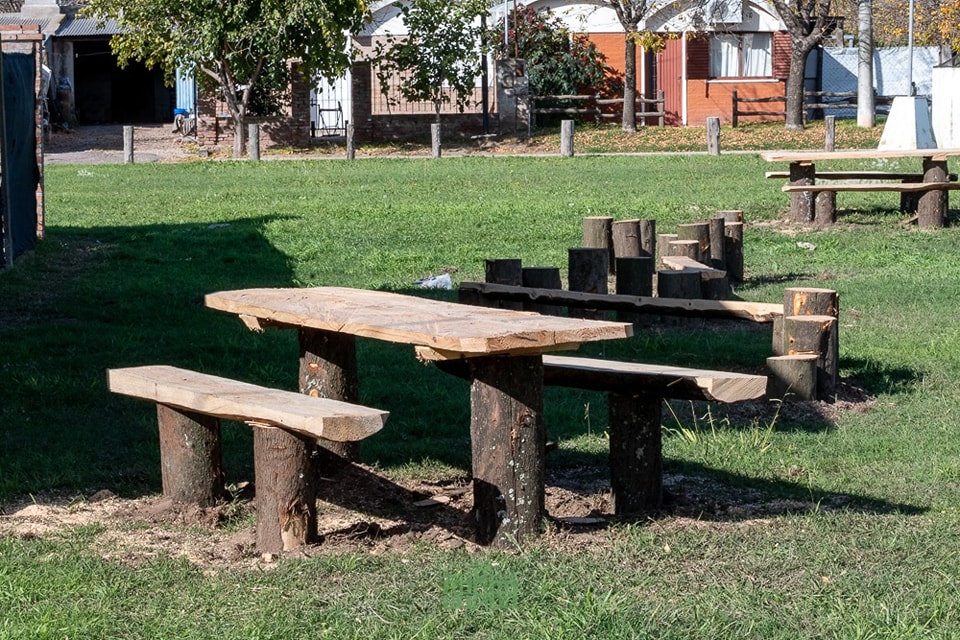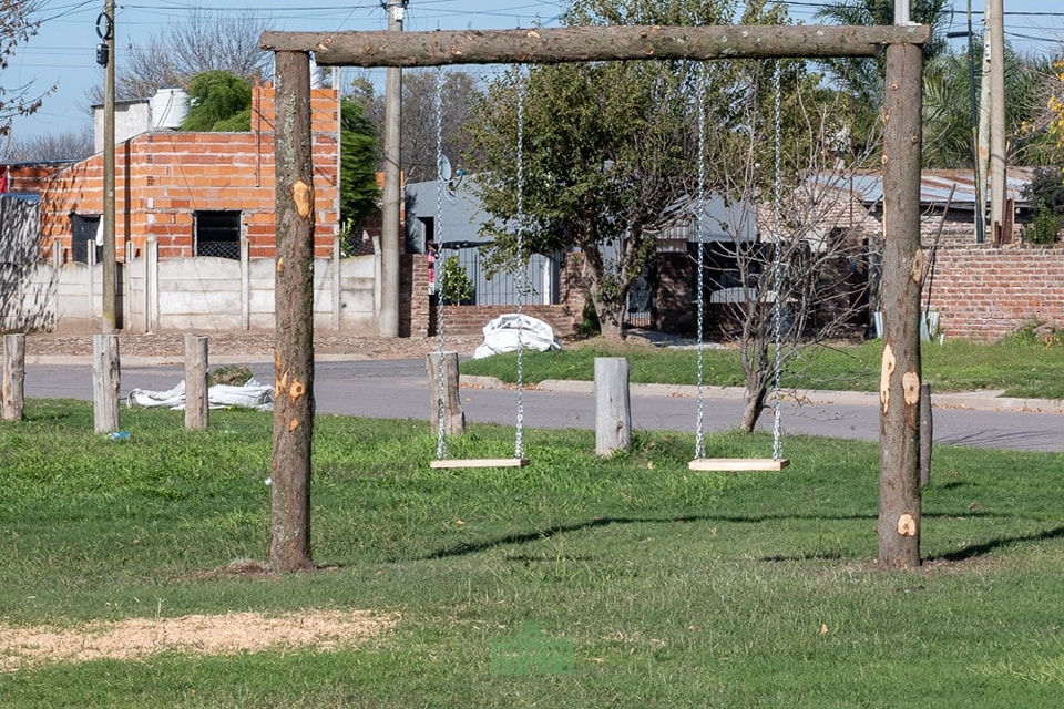 💪🏻 La Dirección de Espacios Verdes instaló nuevos juegos, mesas y bancos en el espacio verde del Barrio Ruax, ubicado en Calle España e Islas Malvinas