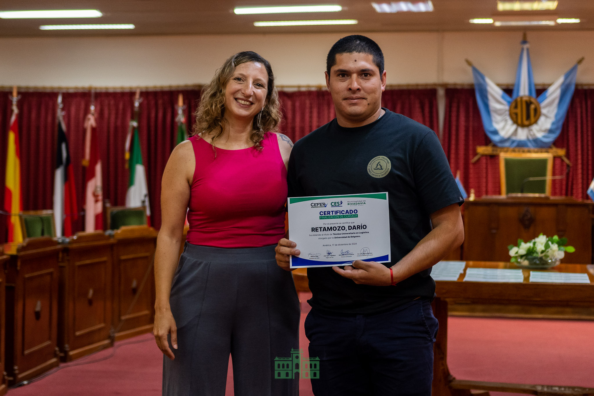 El martes 17/12, el intendente Juanci Martínez, junto a la directora de Educación, Mercedes García Duperou, participó del cierre del año del Centro de Estudios Superiores de Rivadavia, en el cual se realizó la entrega de 60 certificados de diversas carreras y diplomaturas.