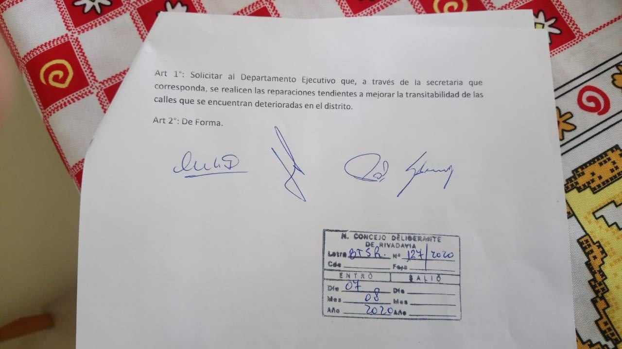 Este viernes 7 de agosto entró al Honorable Concejo Dleiberante un Proyecto de Resolución presentado por el bloque del Frente de Todos – Somos Rivadavia para que el Ejecutivo realice las reparaciones tendiente s a mejorar la transitabilidad en las arterias de nuestra ciudad.