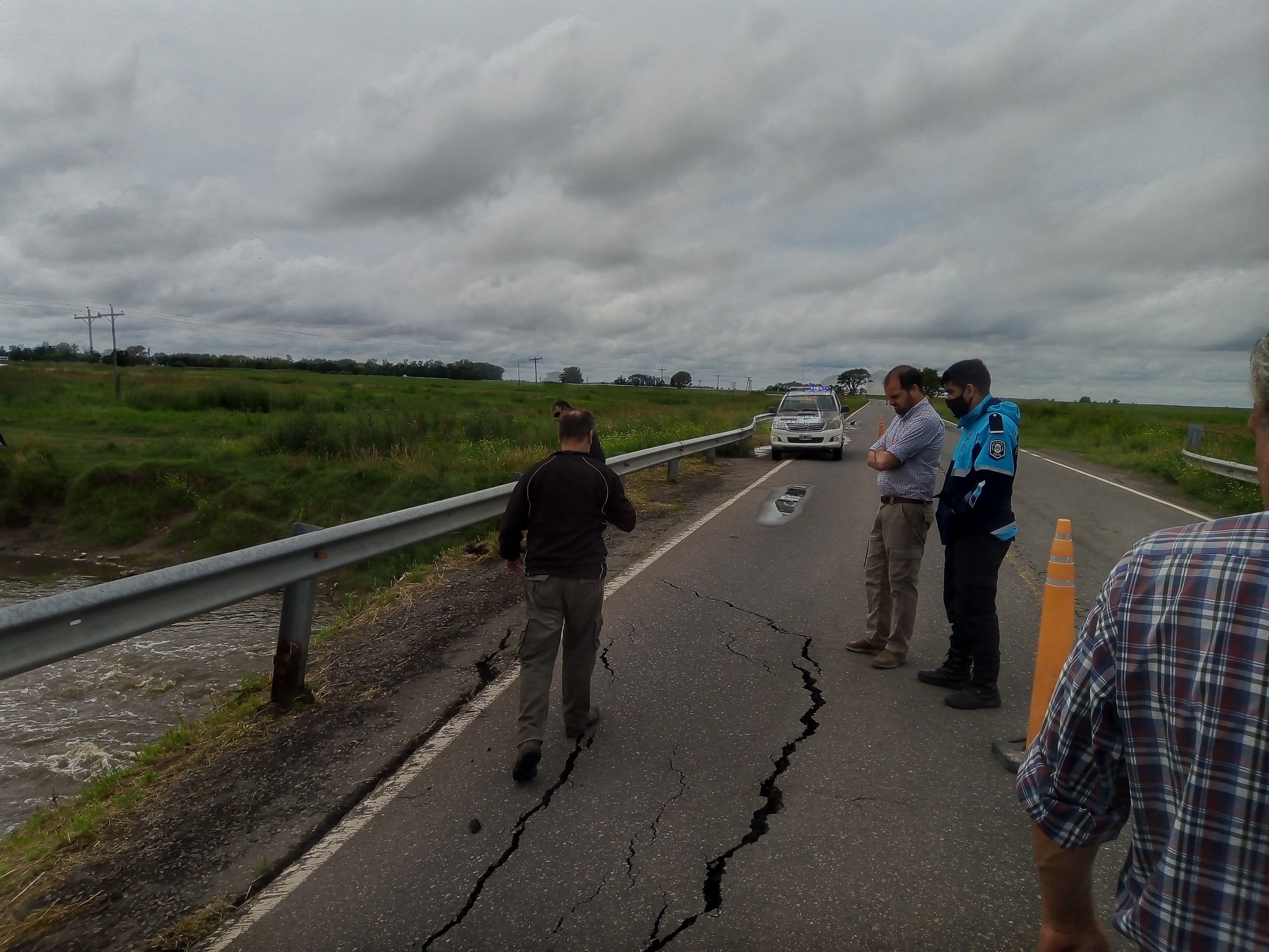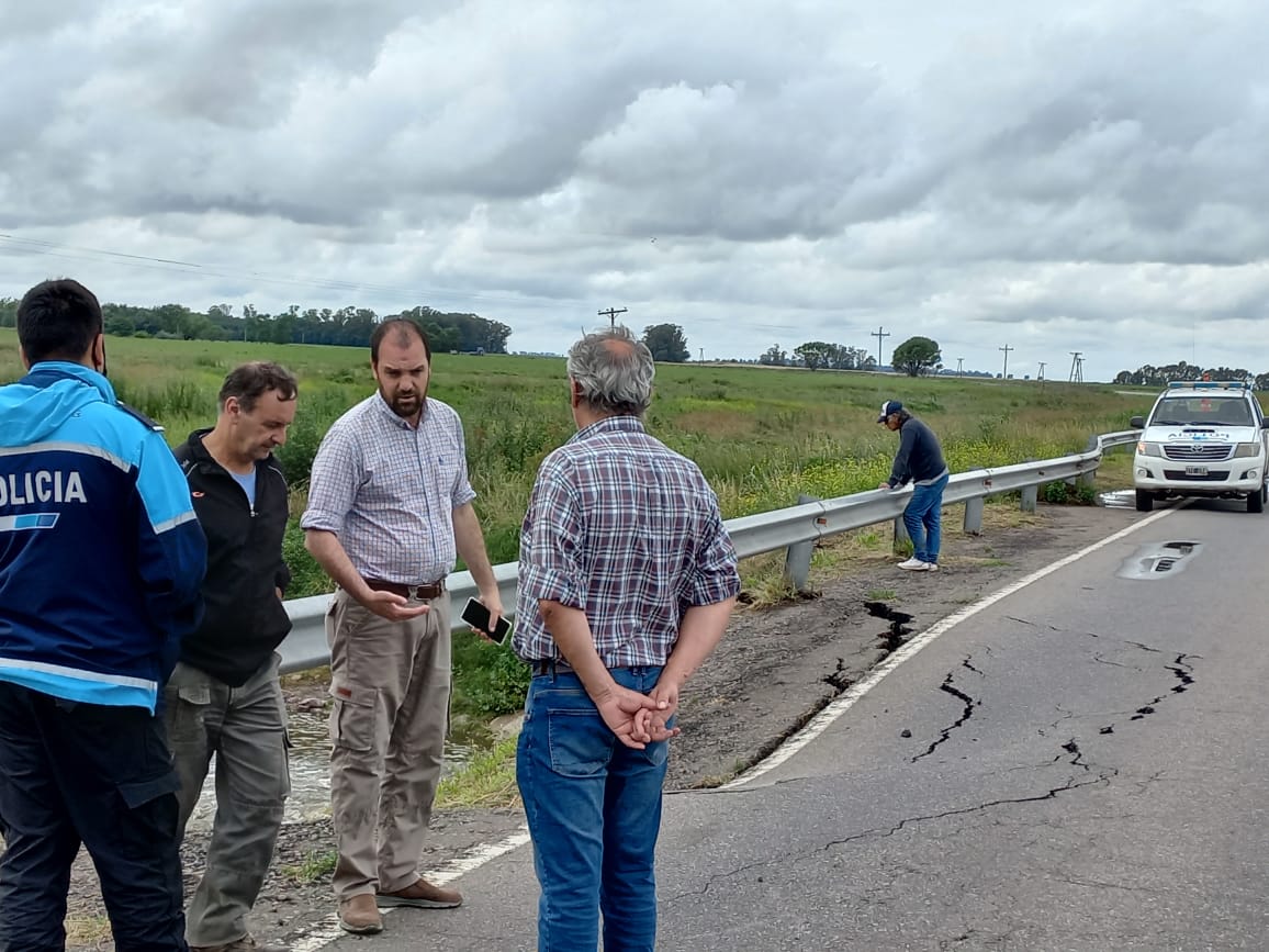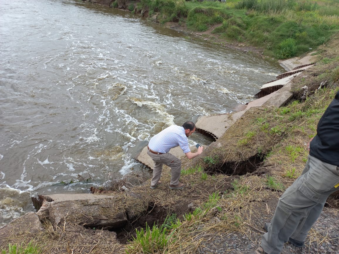 En la mañana del domingo el mandatario comunal de Rivadavia estuvo en el puente de Cuero de Zorro donde en las últimas horas debido a las copiosas lluvias se produjo el hundimiento del asfalto y del terraplen.