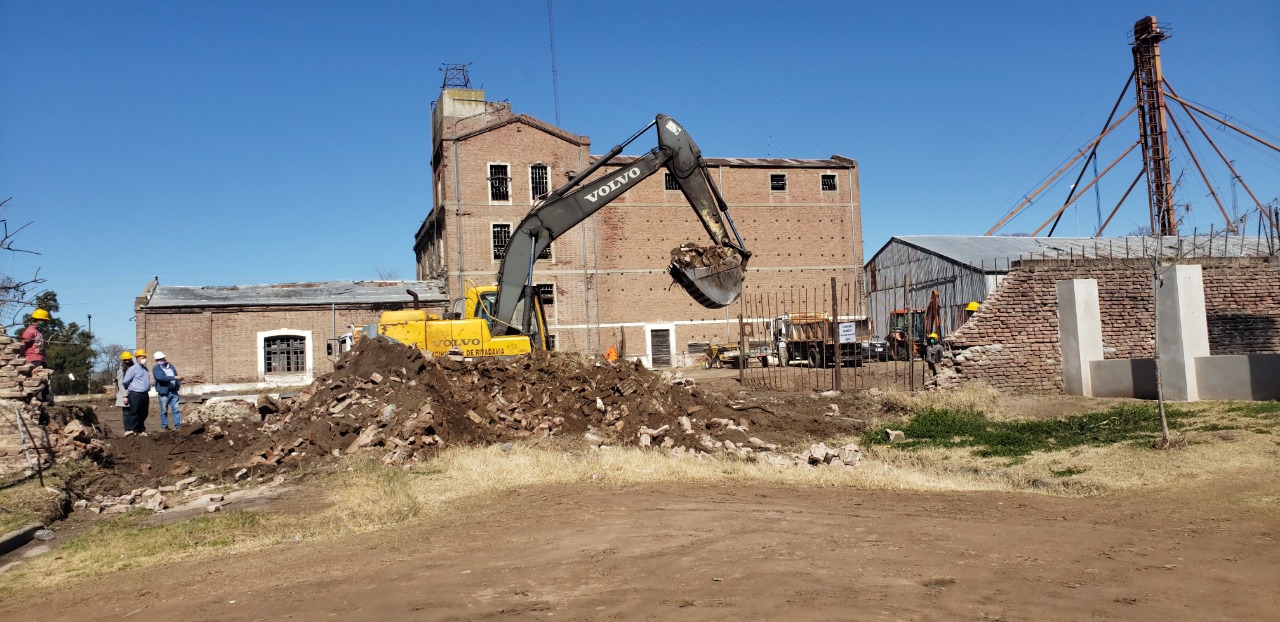 Este jueves los vecinos de ese sector de la ciudad de América vieron como una maquina de Obras Públicas de la Municipalidad de Rivadavia derribó el tapial perímetral que tenía el predio donde se encuentra ubicado el viejo Molino Fenix.