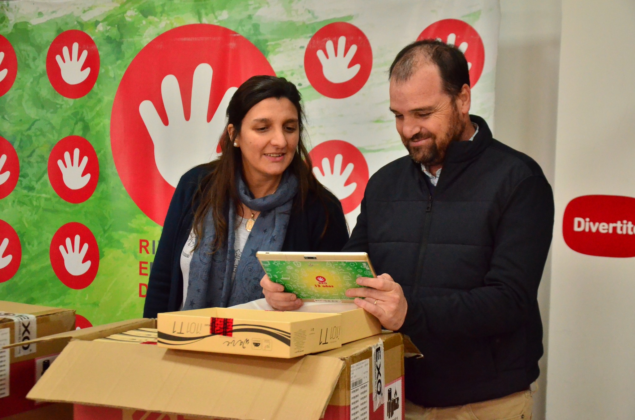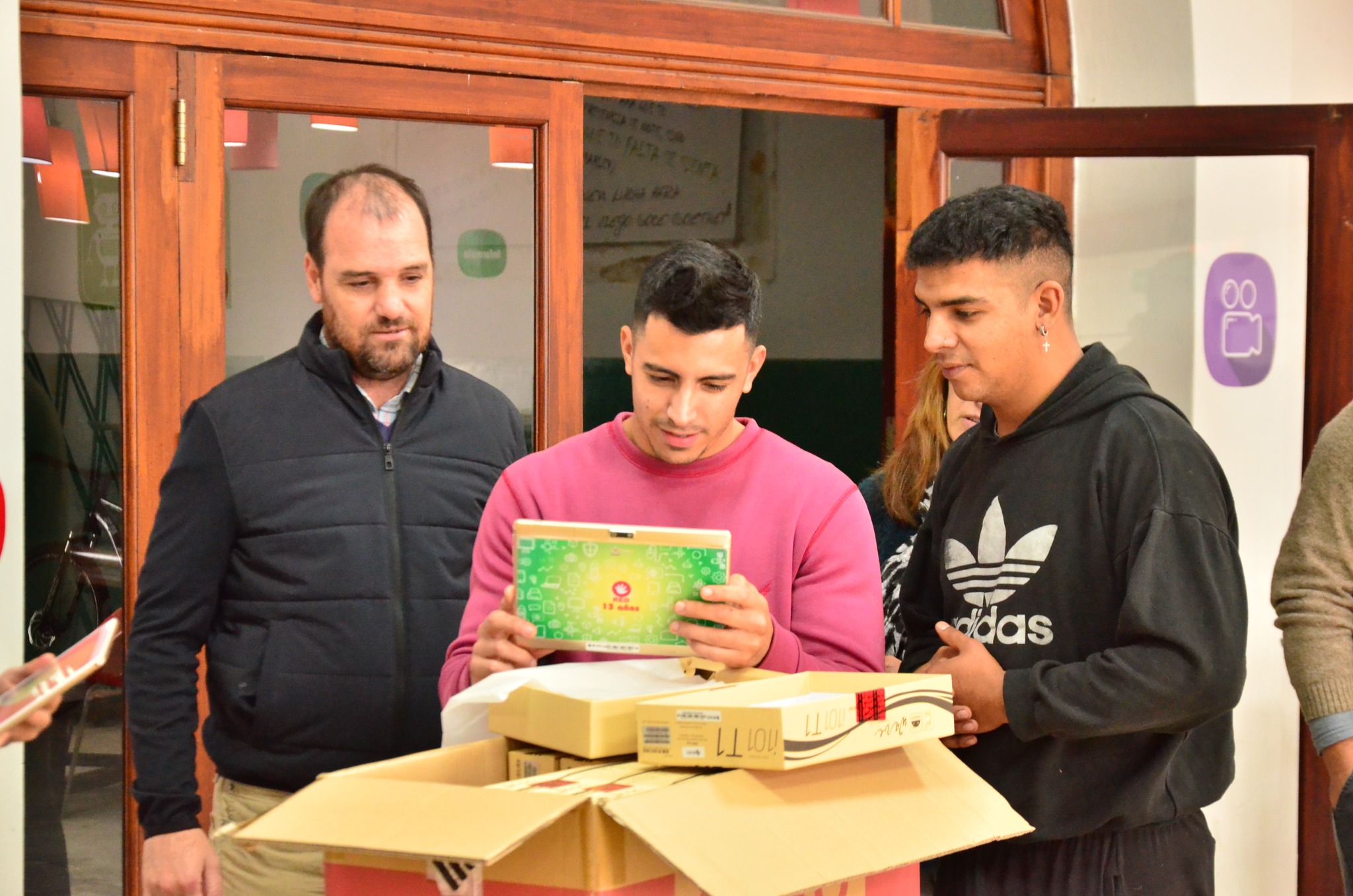 El Intendente Municipal Javier Reynoso, junto a la Directora de Tecnología e Innovación Celeste Vitale, recibieron las 400 tablets que serán entregadas a los alumnos que comenzaron la escuela primaria este 2023.