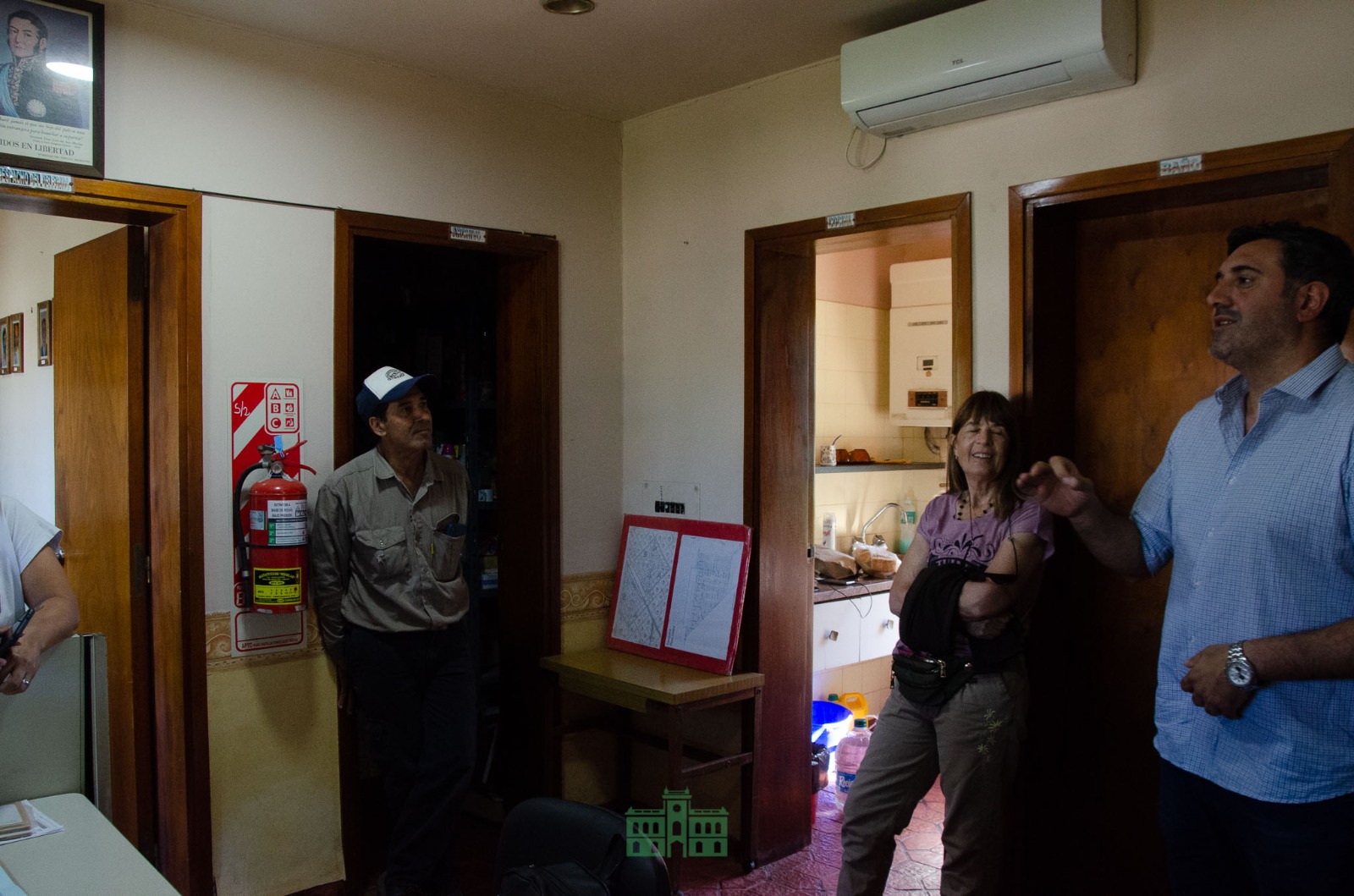 El secretario de Gobierno, Sebastián Hernández, visitó la localidad de Sansinena, donde mantuvo un encuentro con la delegada Mabel Micoli, con quien realizaron una recorrida por el corralón y dialogaron con los trabajadores.