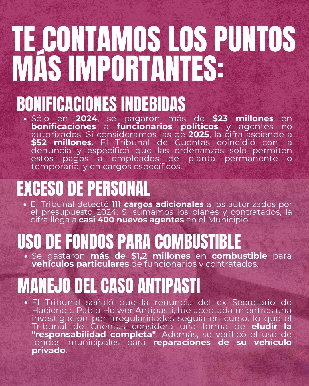 👉🏻 COBROS DE MÁS POR FUNCIONARIOS POLÍTICOS: en 2024 cobraron más de 23 millones de pesos que deberán devolver (en 2025 la suma asciende a más de 52 millones).