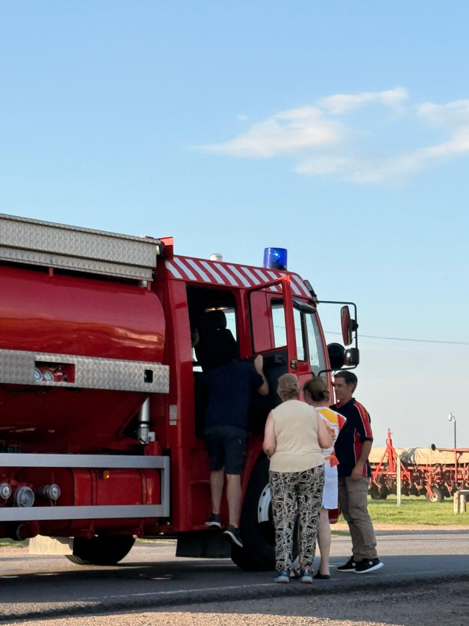Durante la tarde del sábado se llevó a cabo una actividad especial organizada por bomberos que incluyó un recibimiento, caravana y recorrida por la ciudad, con participación de todos los móviles y un fuerte componente emotivo.