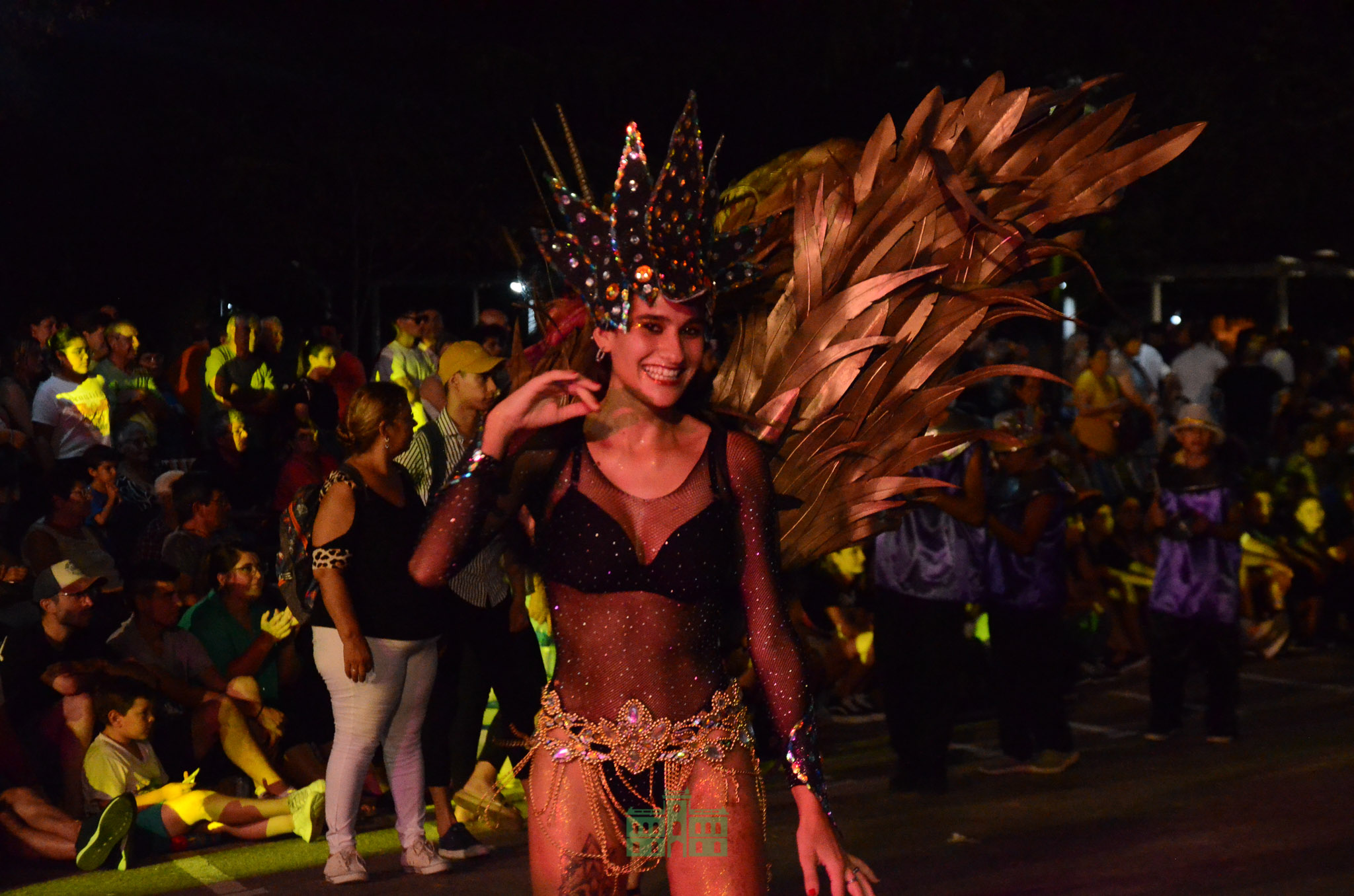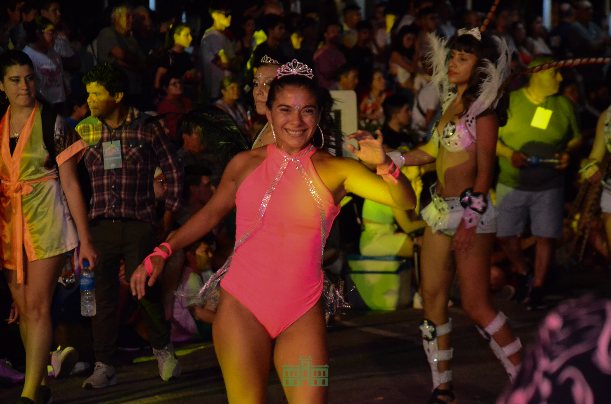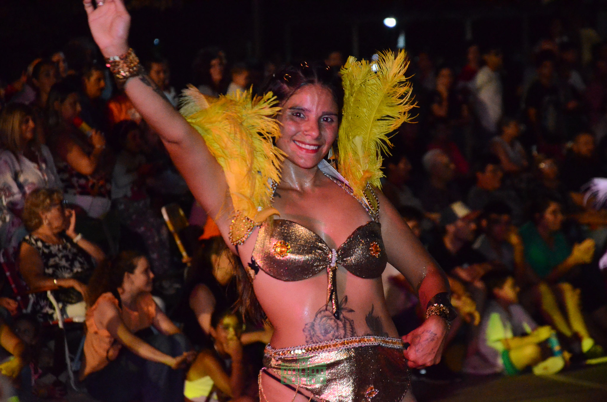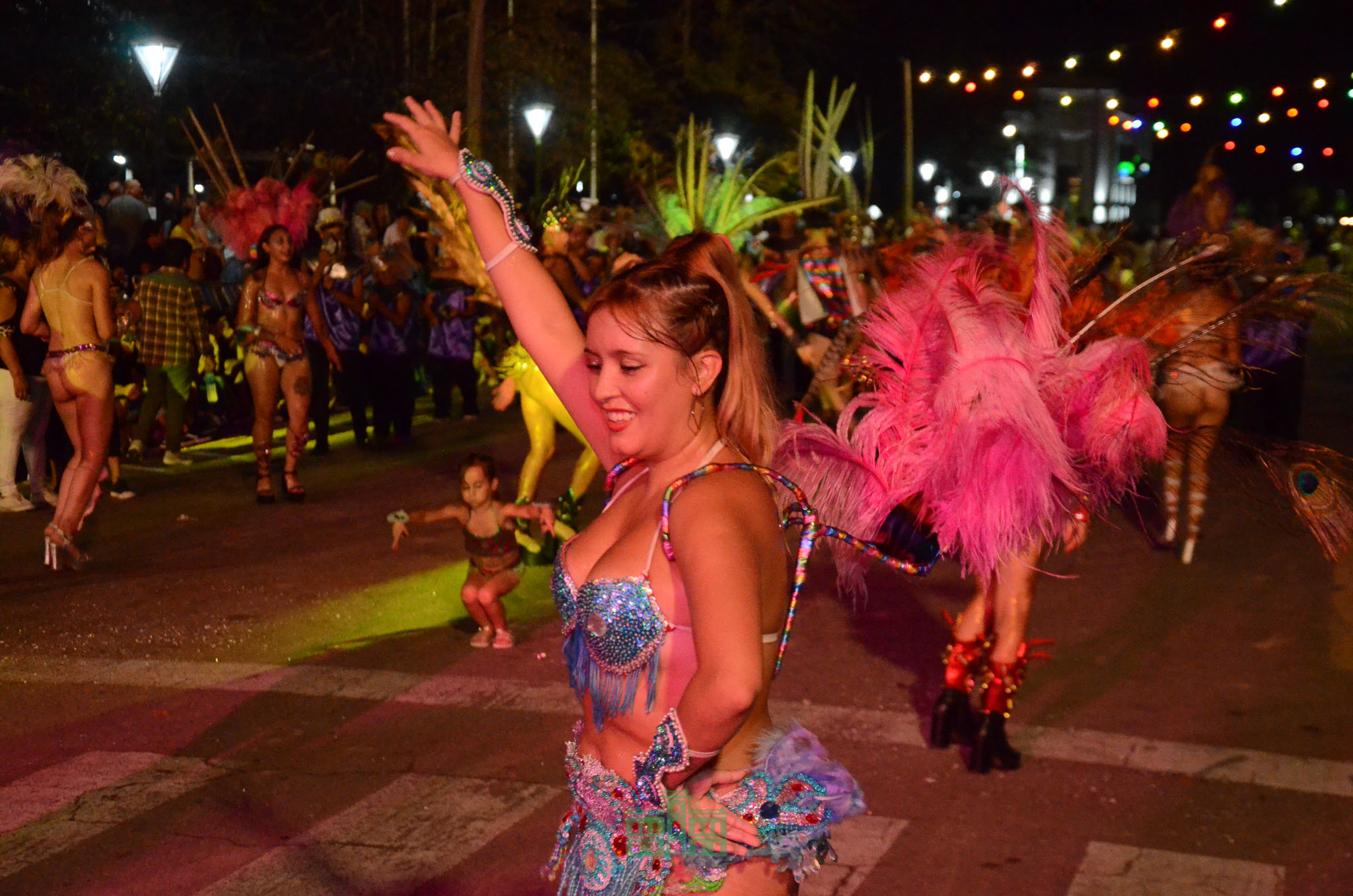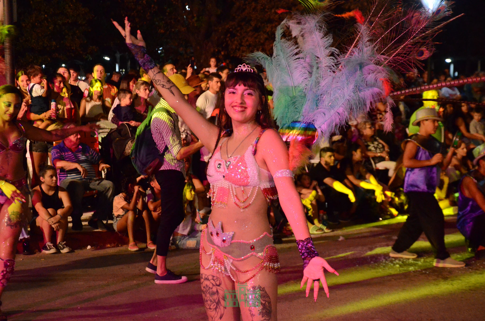 Una multitud disfrutó la tercer noche de los Carnavales de Rivadavia que se realizó por las calles de América en la noche del domingo con comparsas, murgas, disfraces sueltos, mucha espuma y diversión.