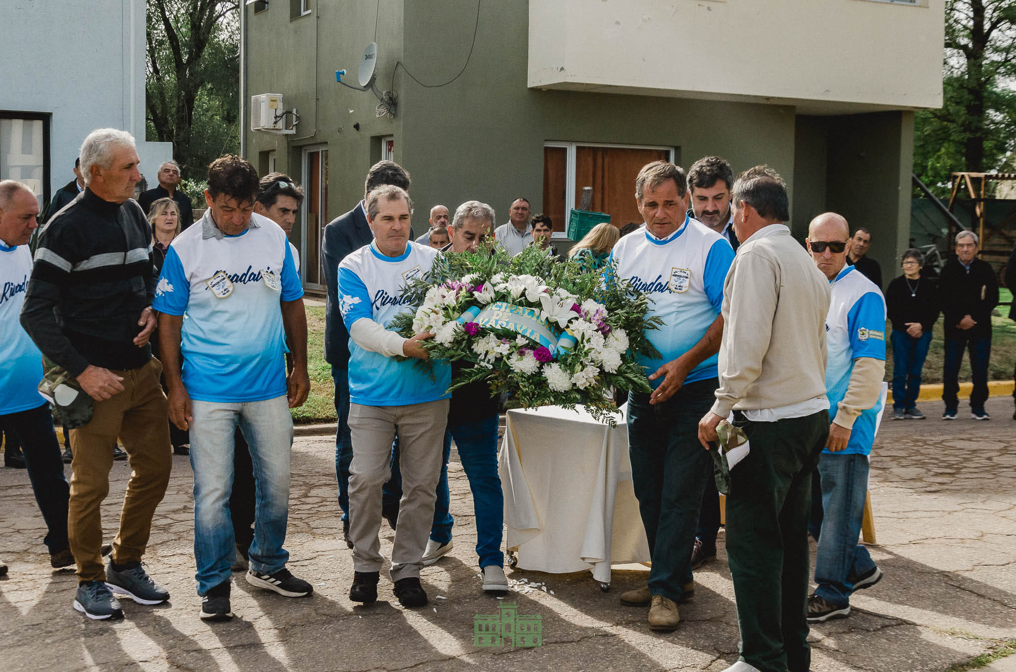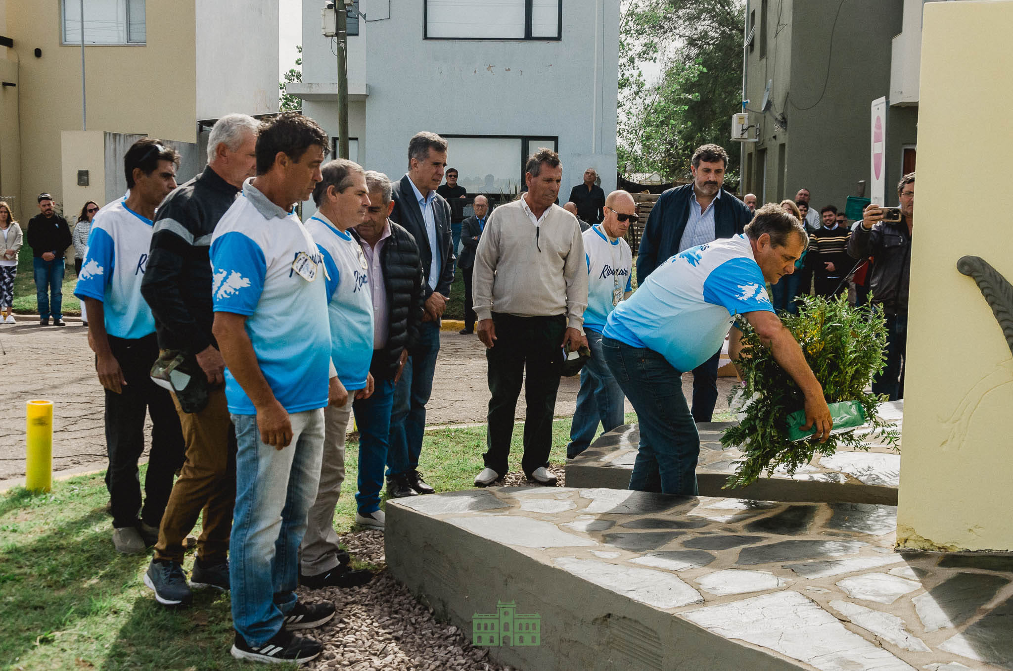 A continuación se procedió a la colocación de una ofrenda floral por parte del Intendente Juan Alberto Martínez, el Secretario de Gobierno Sebastián Hernández y todo el grupo de combatientes.