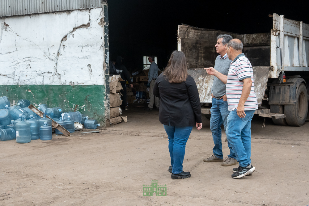 El intendente Juanci Martínez, acompañado por el secretario de Gobierno, Sebastián Hernández; la tesorera municipal, Rocío Macho; y los encargados de RUCALIM, Juan Gobo y Jorge Rodríguez, encabezó la entrega del 70% de lo recaudado por la venta de materiales reciclados a los trabajadores de la planta municipal de reciclaje.