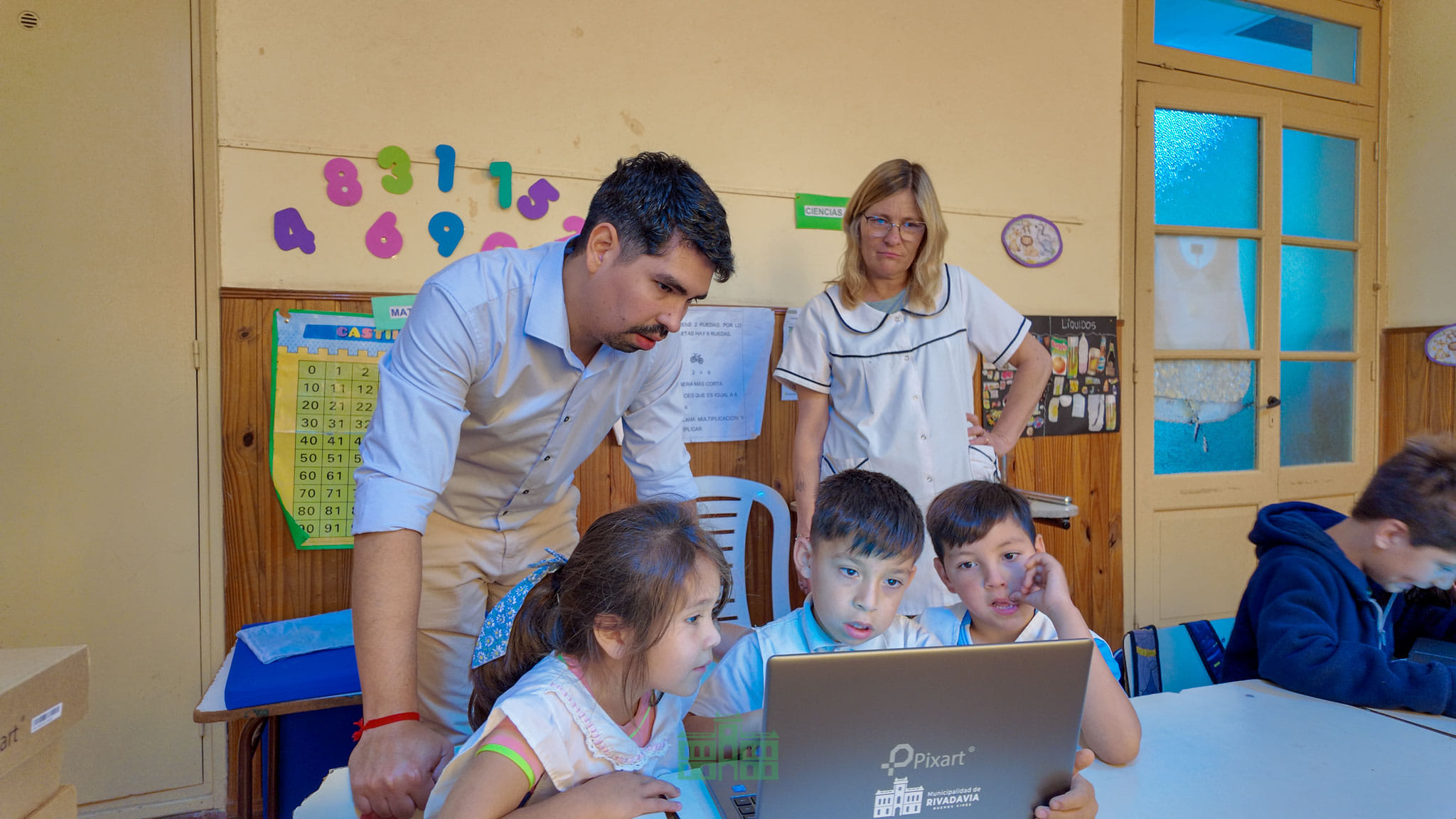Esta semana el director de Tecnología, Modernización y Desarrollo Emprendedor, Guillermo Acosta, la directora de Educación, Mercedes García Duperou y la delegada, Mabel Micoli, hicieron entrega de las notebooks del nuevo programa municipal Rivadavia Transformación Digital, a la Escuela Primaria Nº 7 de Sansinena.